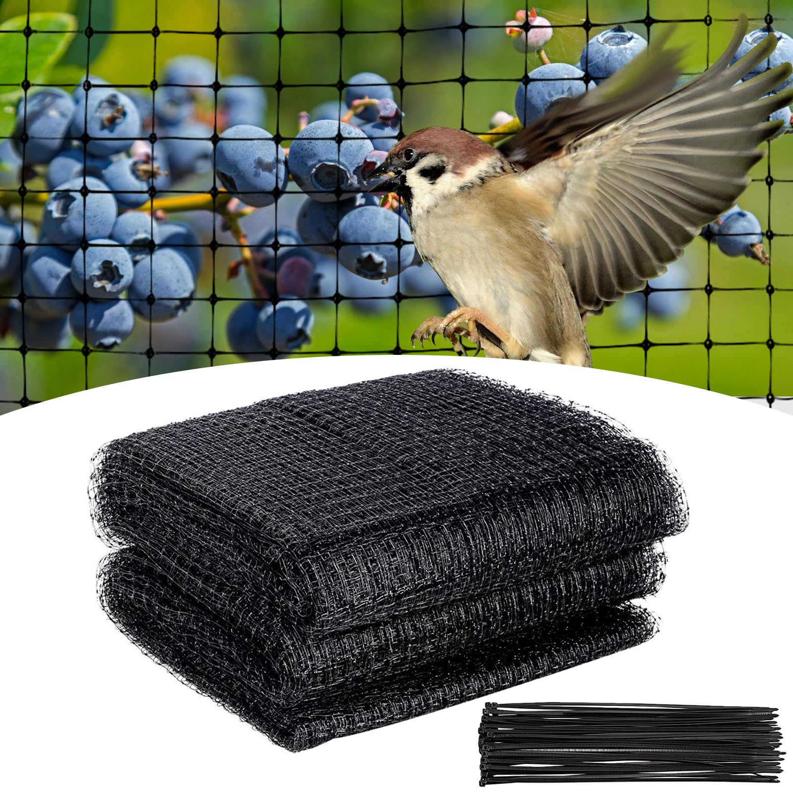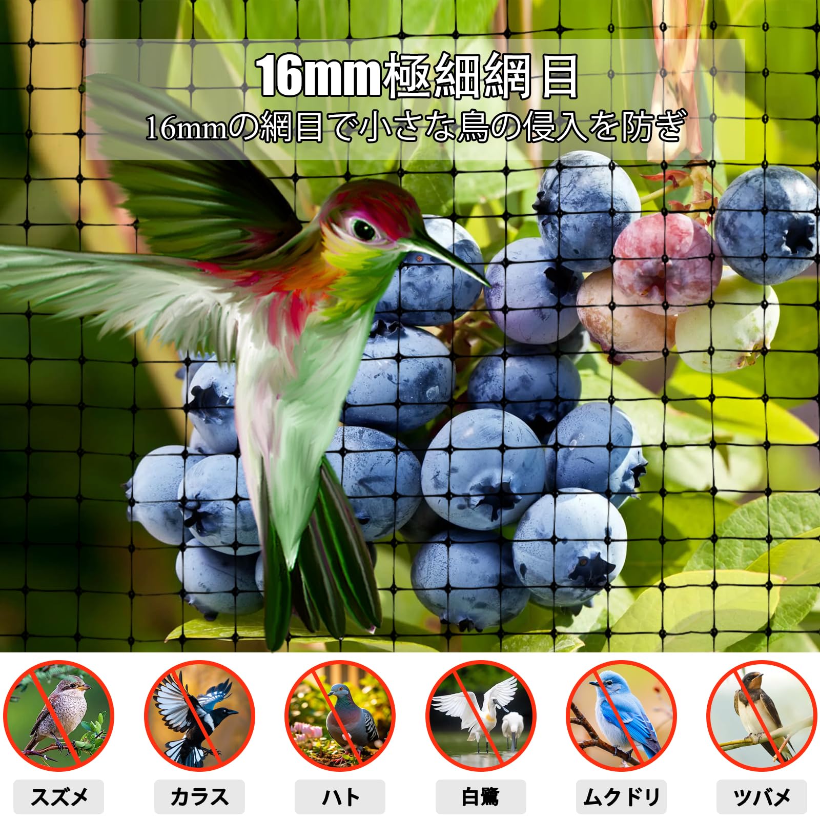 防鳥ネット 鳥よけネット 幅2.1m×縦30m 果物 鳥よけ 黒 大容量 16mm極細網目 鳥害対策 防鳥網 鳥よけグッズ カラス 鳥獣 猫よけ ナイロン材 防鳥グッズ 結束バンド付 農 ブルーベリー