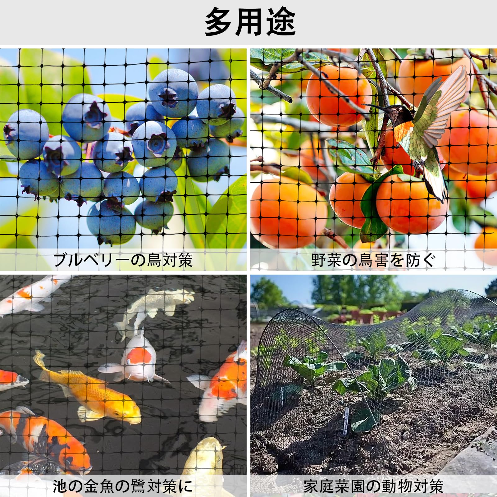 鳥からの被害を防ぐ】家庭菜園や畑向け防鳥ネットです。ハトやツバメ、カラスなどに悩んでいる方にオススメ!ブラック色で、目立たず景観を損ねないのはポイント。16mm極細網目で鳥によるゴミ被害や菜園被害を効果的に防げます。果樹、菜園、ゴミの被害への対策として、様々な場所で活躍しています。