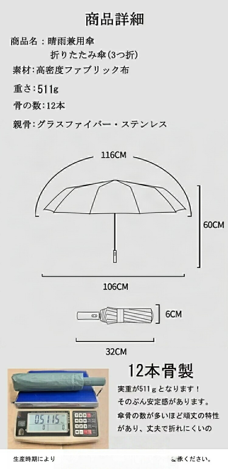 商品情報 12本骨 晴雨兼用傘
