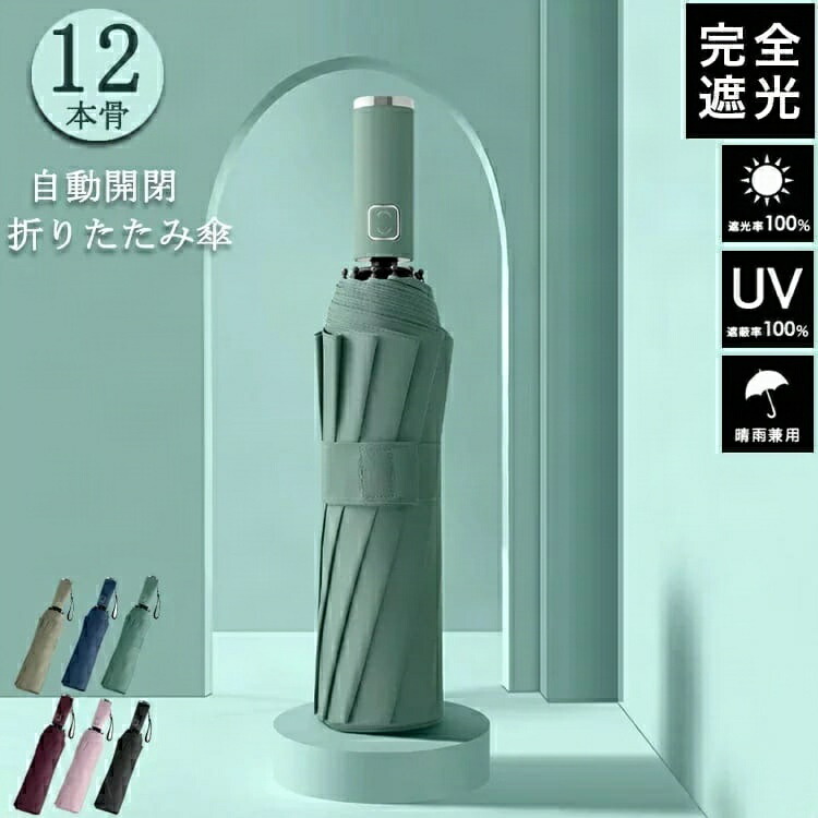 完全遮光 自動開閉 長傘 折りたたみ傘 傘 晴雨兼用傘 豊富な品揃え グリーン カーキ ブラック ピンク ワインレッド ブルー