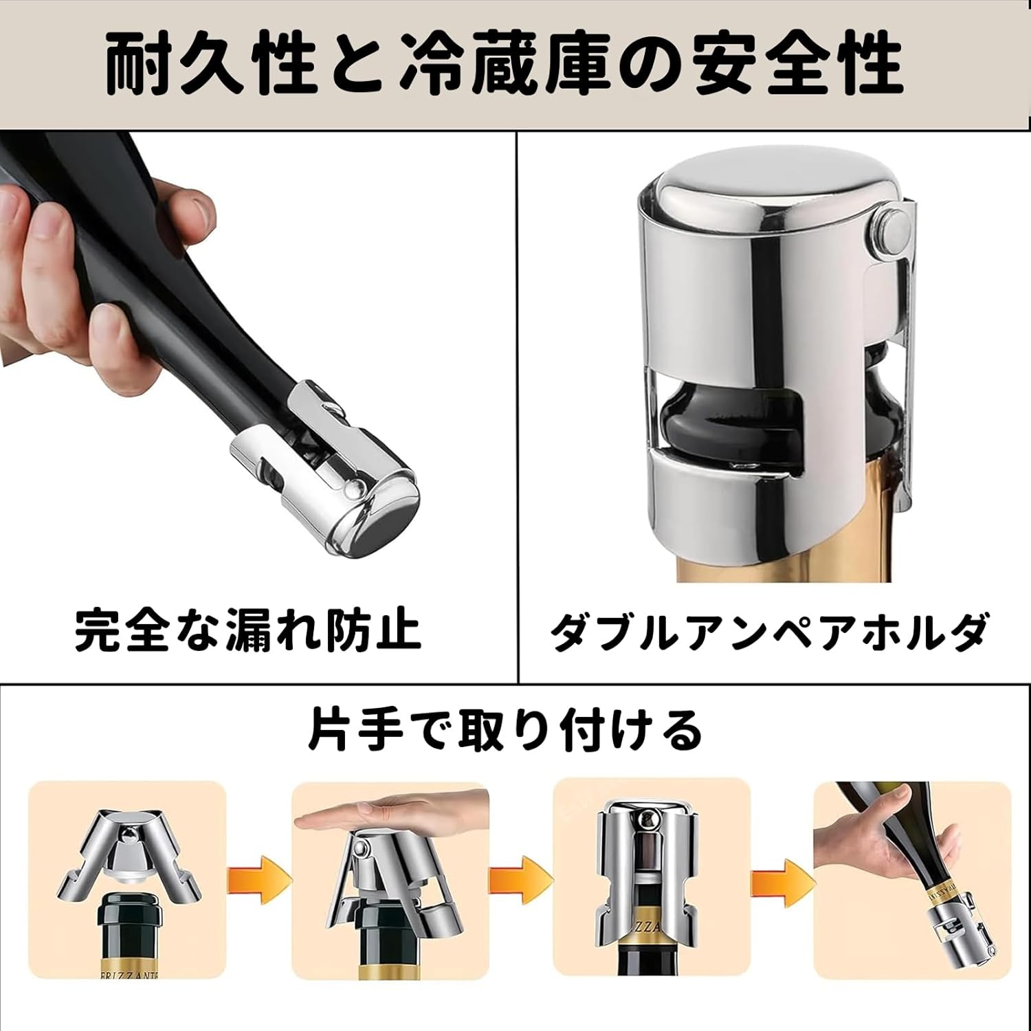 シャンパンストッパー ワイン シャンパン 栓保存 漏れ防止 酸化防止 ワインキャップ スパークリングストッパー 使用簡単 再利用可能 飲食店 自宅用 圧力ポンプ不要 鮮度延長
