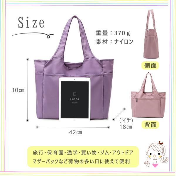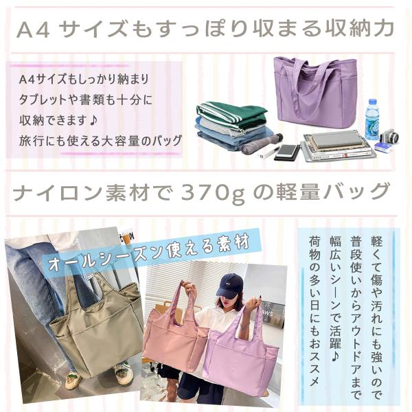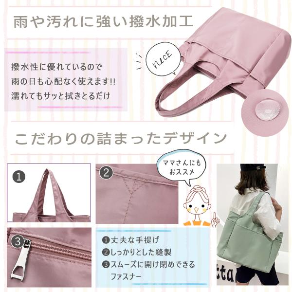 トートバッグ レディース 大きめ ファスナー付き マザーズバッグ トート 軽い ナイロン 無地 おしゃれ かわいい 大容量 仕事 肩掛け 通勤 通学 旅行 保育園 ポケット オシャレ シン カジュアル