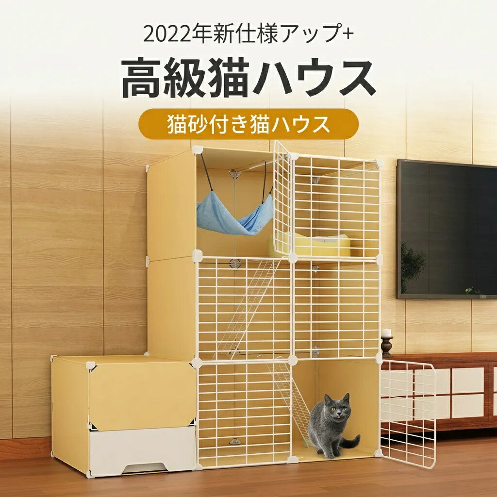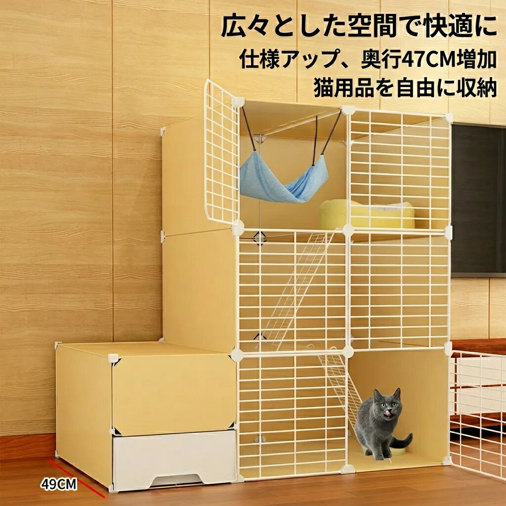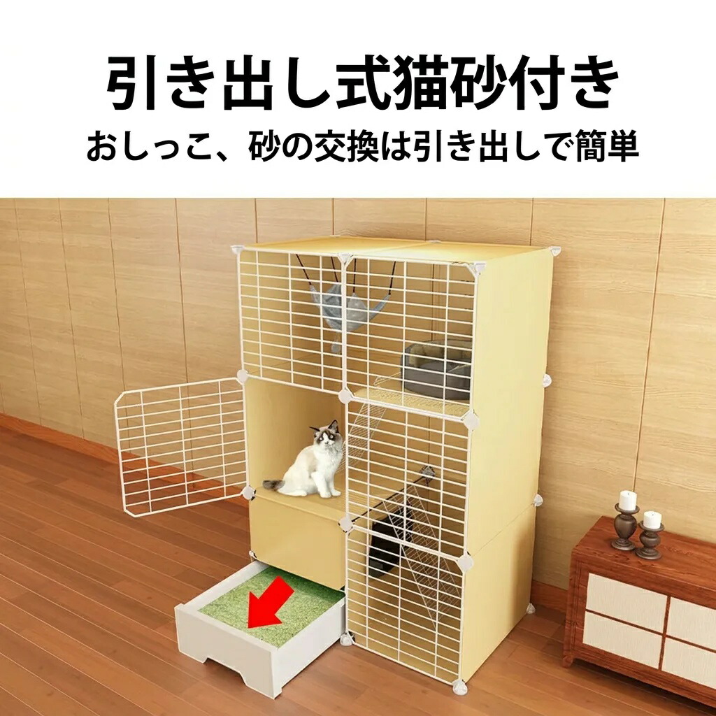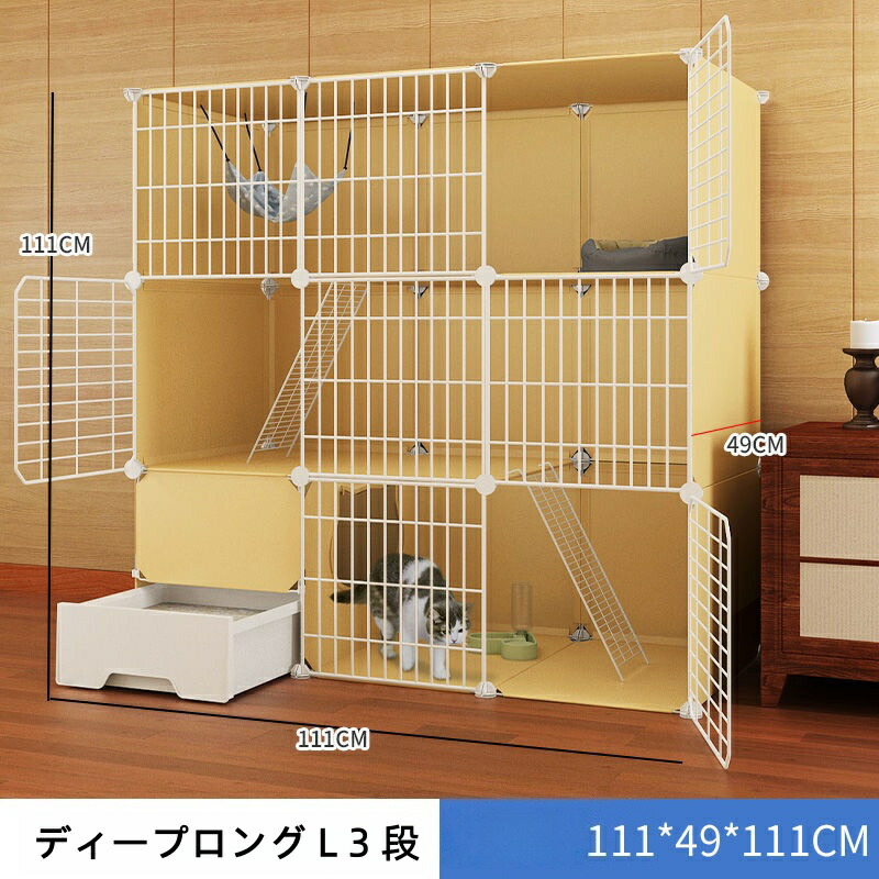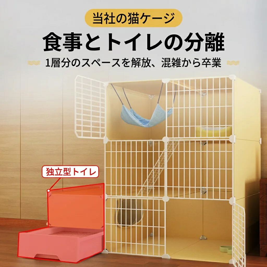 【組立簡単・組替え自由・猫用ケージ】キャットケージはDIYで作られているので、お好みに合わせて形をデザインできます。工具不要、パーツをはめ込むだけで組み立てられるので、初心者の飼い主や女性でも手軽に設置できます。移動する時、使わない時は折りたたみして収納できます!さらに、同じサイズの付属品を自由に交換したり、一段タイプ、二段タイプとしてもお使い頂けます。
