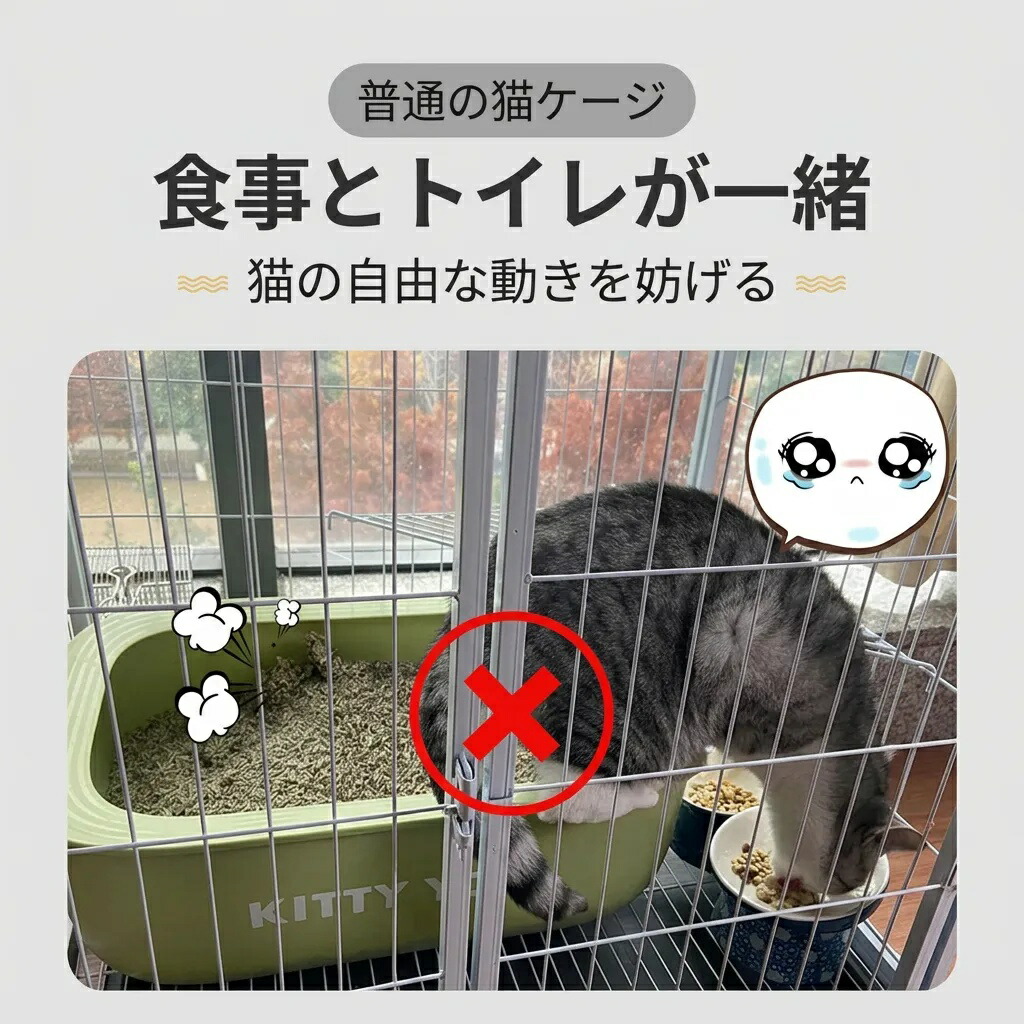 【耐久性・安定性・猫用ケージ】高品質な鉄、PP素材を採用して、耐久性に優れているので、長期間ご使用いただけます。全体には四角型のデザインで、安定性が高くて、揺れにくいです。ネコちゃんの安全をしっかりと守ります。半密閉型の猫用ケージは、ペットが落ち着いて隠れられる場所を提供し、空気の循環も確保します。猫に安全で快適な場所を提供しましょう。
