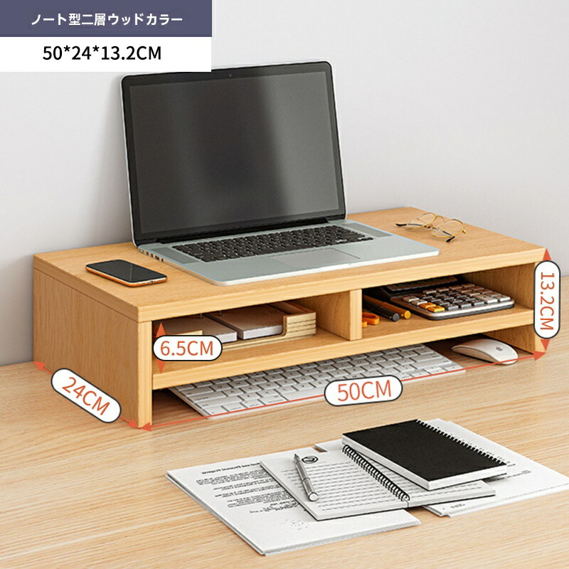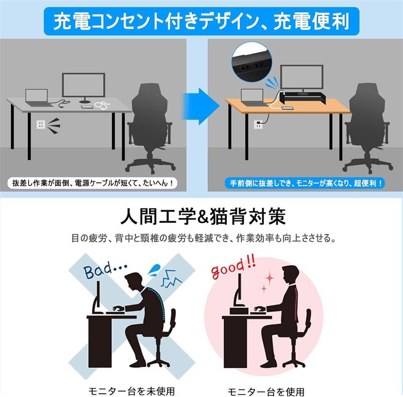 モニター台 モニタースタンド 幅50×奥行24×高さ14cm パソコン台 組立簡単 滑り止め 人間工学デザイン 姿勢改善 調整可能な高さ パソコンラック マウス収納 卓上収納 長時間作 キーボード収納