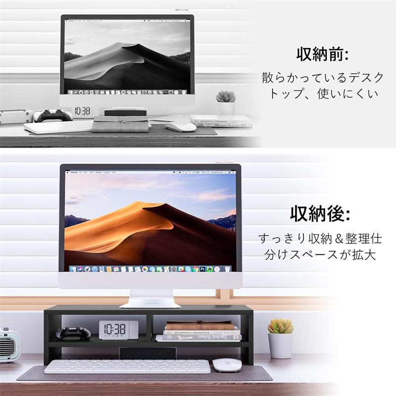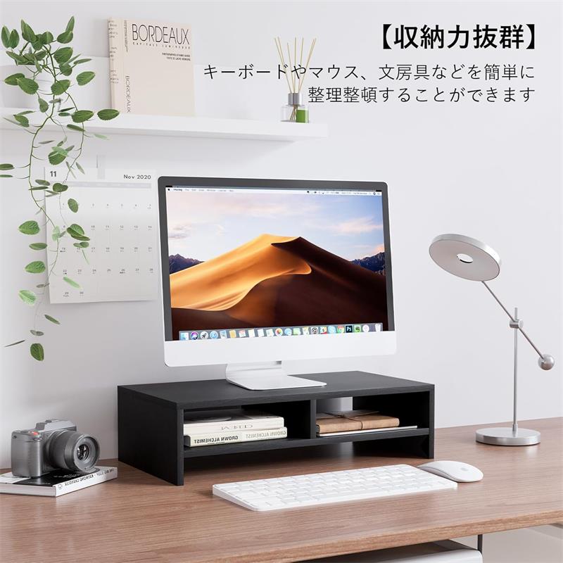 【収納力抜群】スタンドには収納スペースがあり、キーボードやマウス、文房具などを簡単に整理整頓することができます。デスクの上をすっきりと保つことができ、必要な物をすぐに手に取れる便利な設計です。作業スペースを広げるだけでなく、机の上を整頓することで、仕事の効率も向上します。