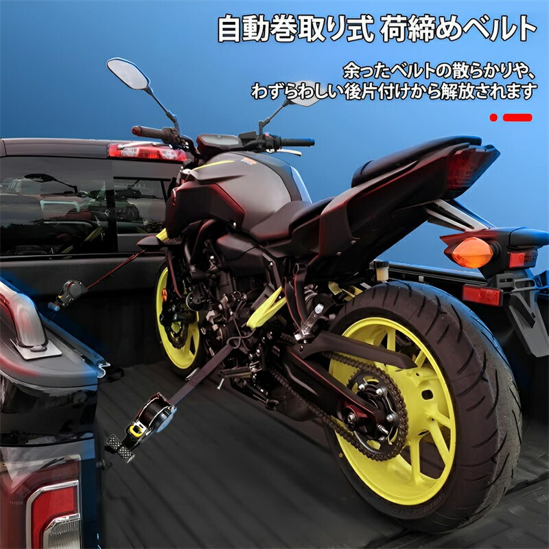 自動巻取り式 ラチェットベルト ラッシングベルト ラチェット式 1 2本セットタイダウンベルト 多用途 引越し 運搬 トラック 車載用 バイク キャンプ 物流作業 強力固定 運送時の荷物の アウトドア