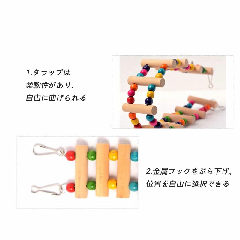 木のビーズ、カラフルなロープ、ベルがあなたの鳥を瞬時にヒットさせます。