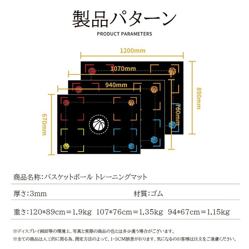 バスケットボールトレーニングマット バスケットボール フットワーク訓練 滑り止め ラバーフットトレーニングシステムマットポー 3mm厚