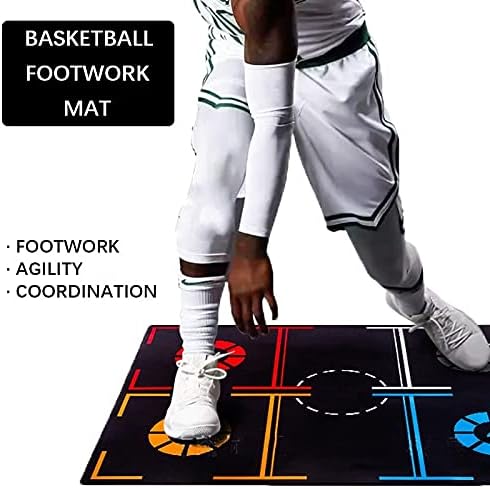 バスケットボールトレーニングマット バスケットボール フットワーク訓練 3mm厚 滑り止め ラバーフットトレーニングシステムマットポータブル 防水 運動選手ボールコントロールトレーニング装置 ポータブル 青少年/成人ボールコントロールトレーニング
