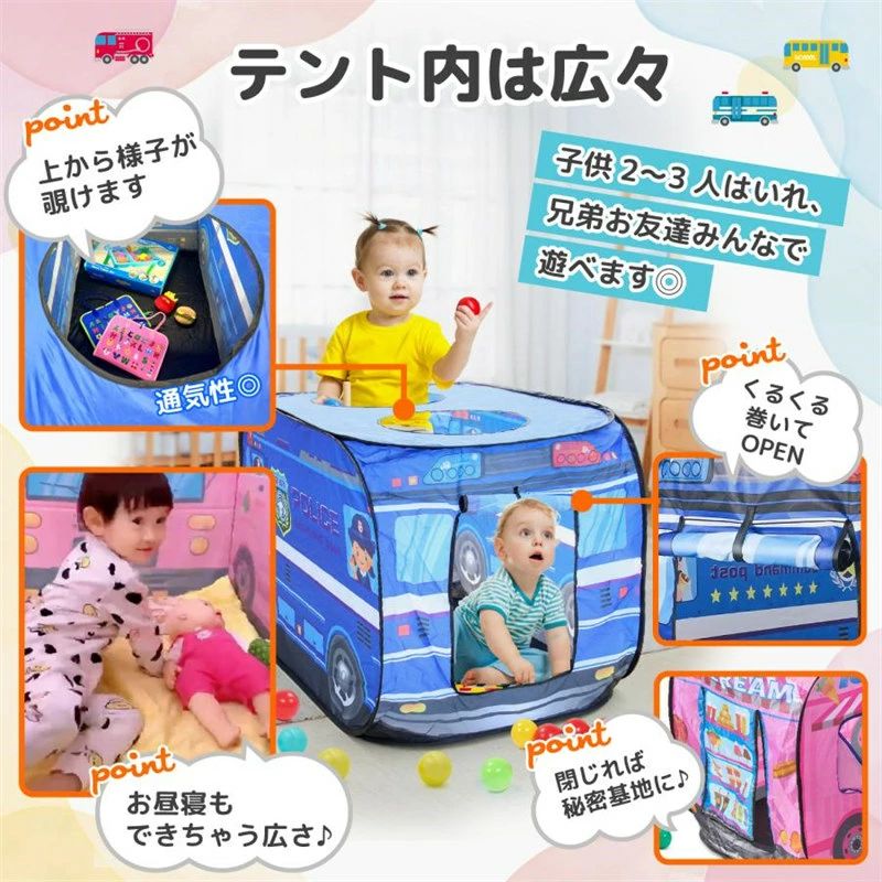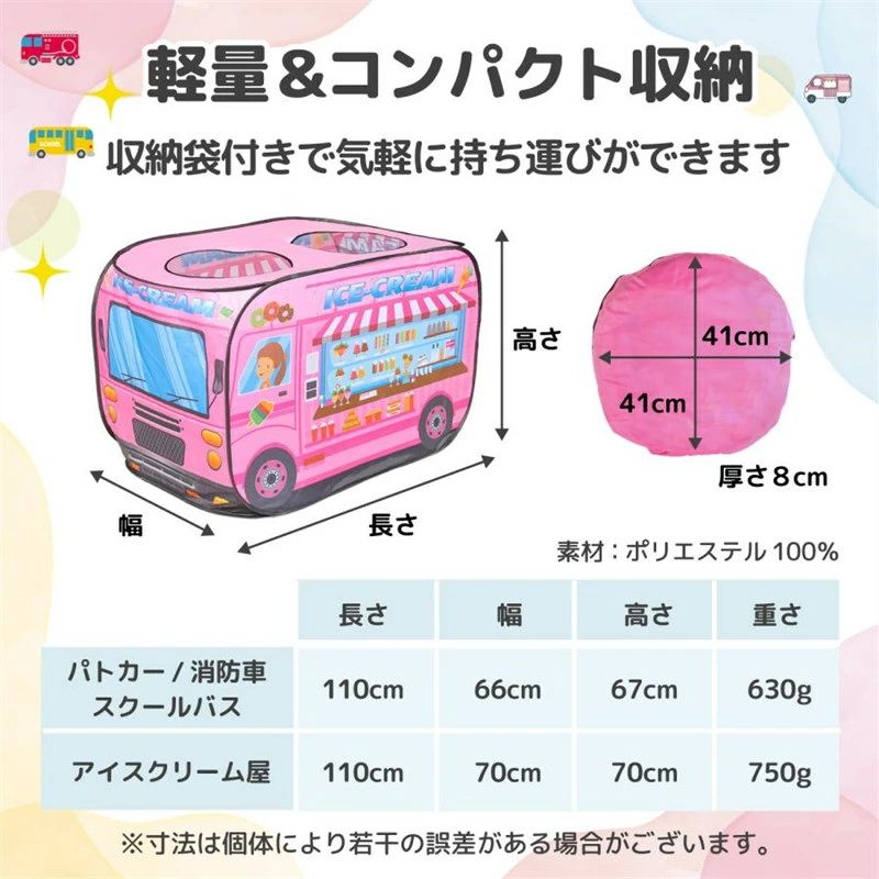 キッズテント バス 子供テント 折りた おもちゃ ままごと ごっこ遊びトイ その他 新作 パトカー スクールバス 消防車 アイスクリーム屋