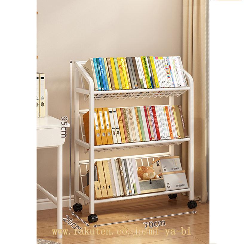 本棚 ブックシェルフ キャスター付き スリム 大容量 教科書 収納 書類棚 絵本ラック 書類整理 ラック デスクサイド収納 ブックスタンド 漫画 雑誌