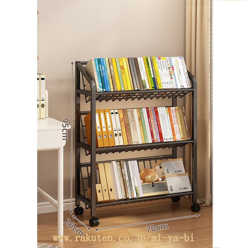 移動式 収納 ラック 本棚 キャスター 黒色 白色 70*63 70*95 70*127