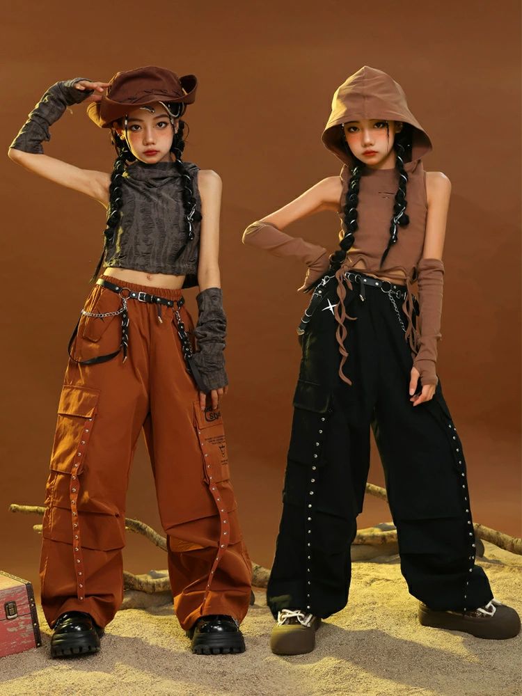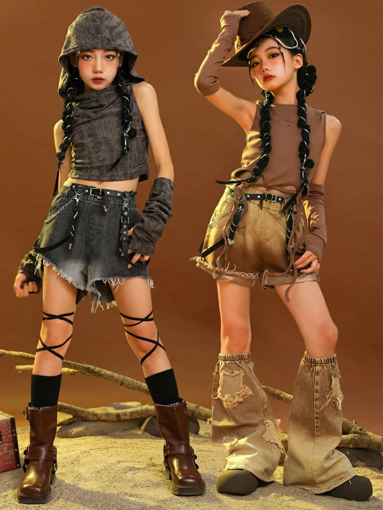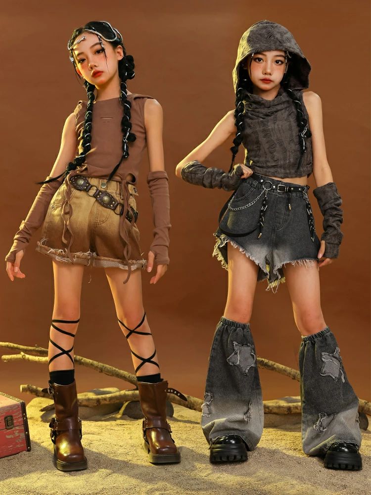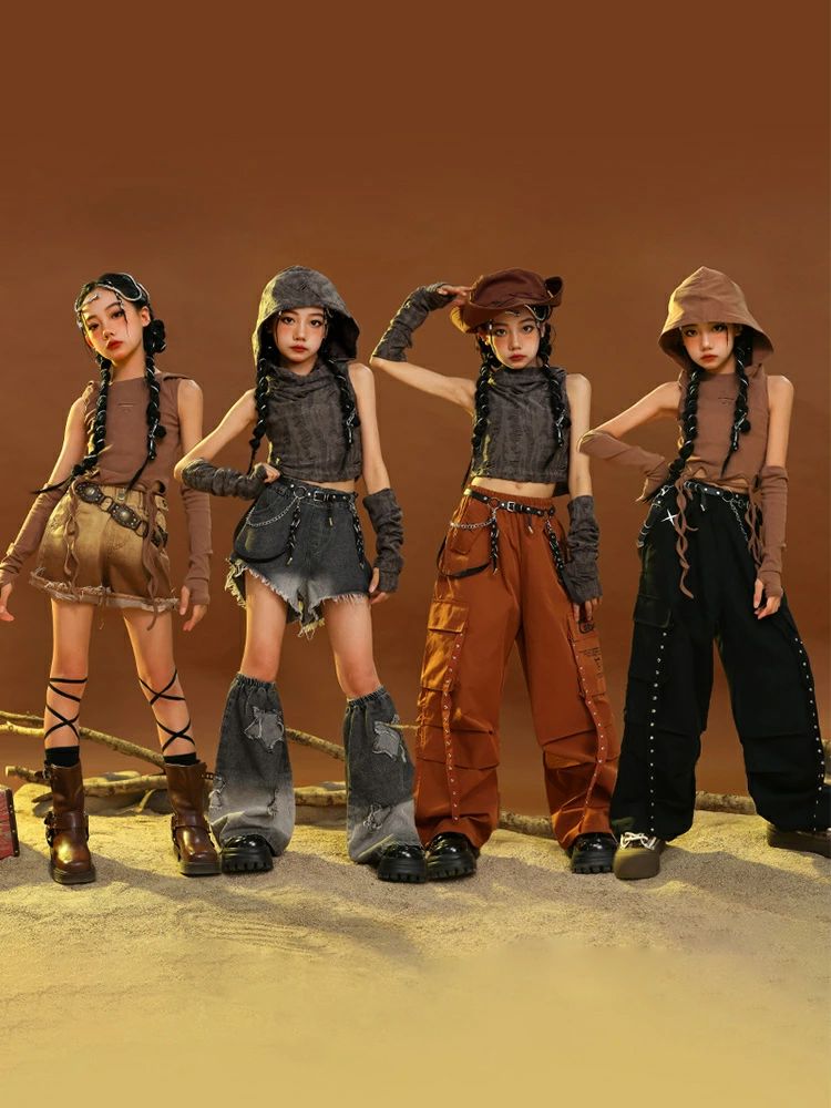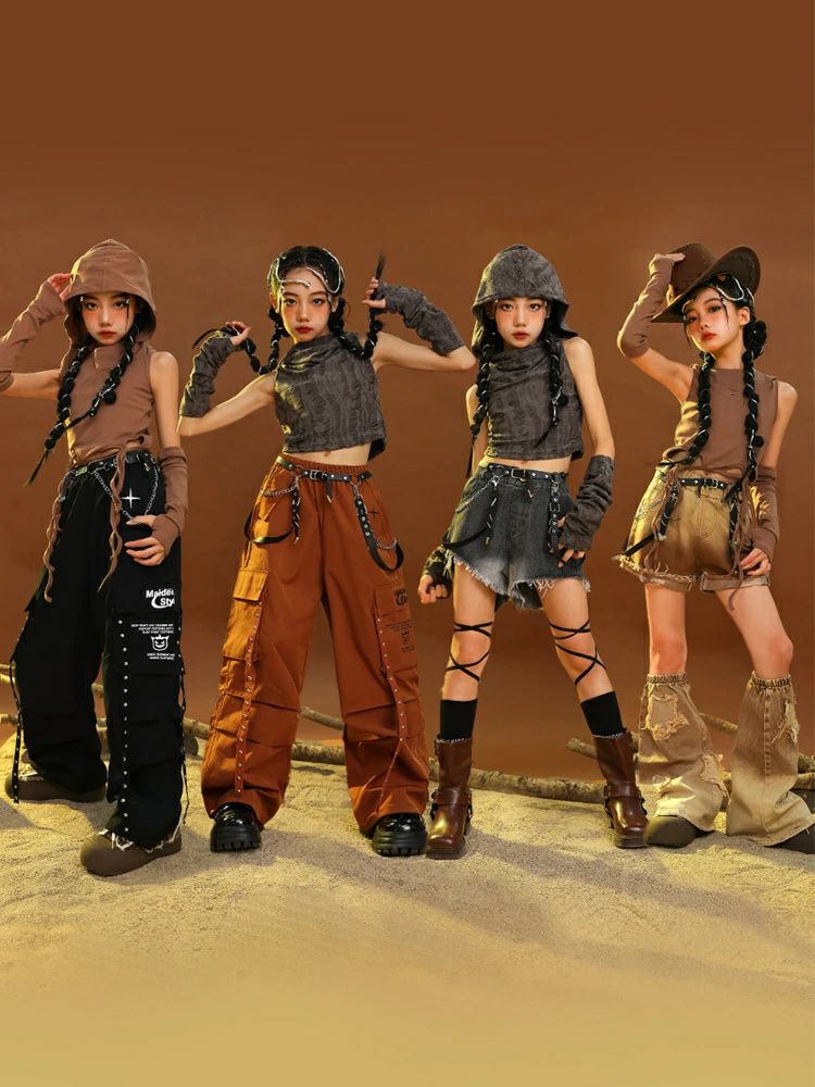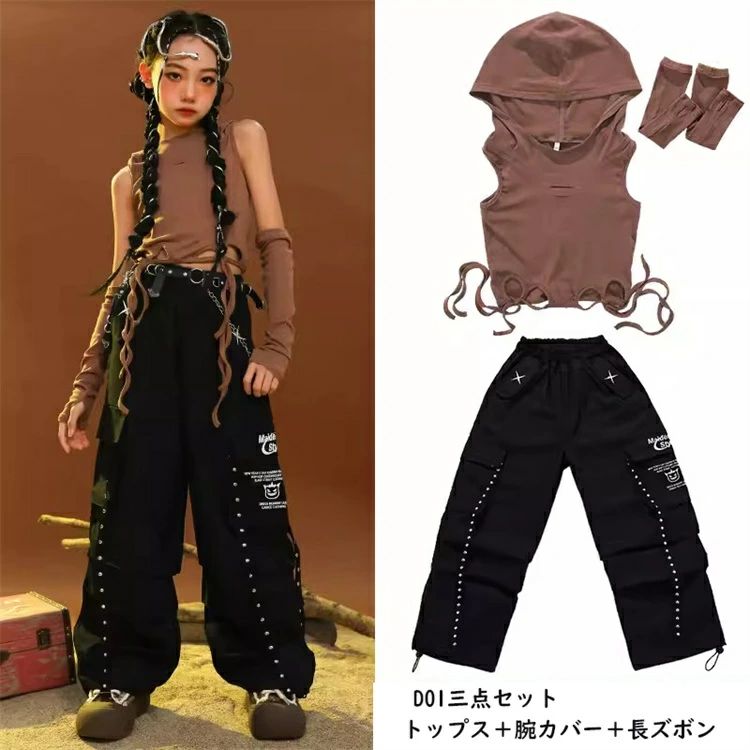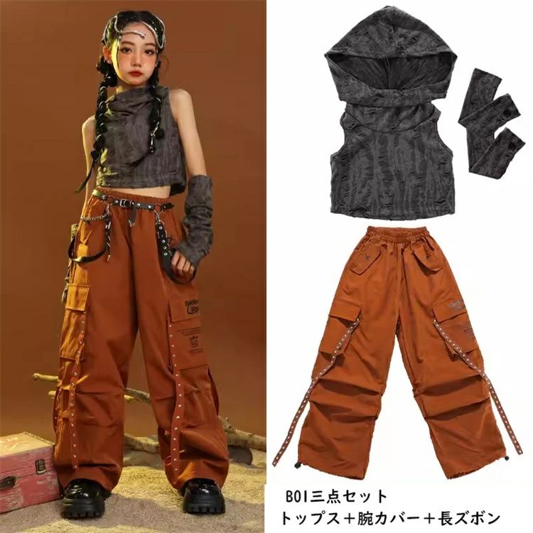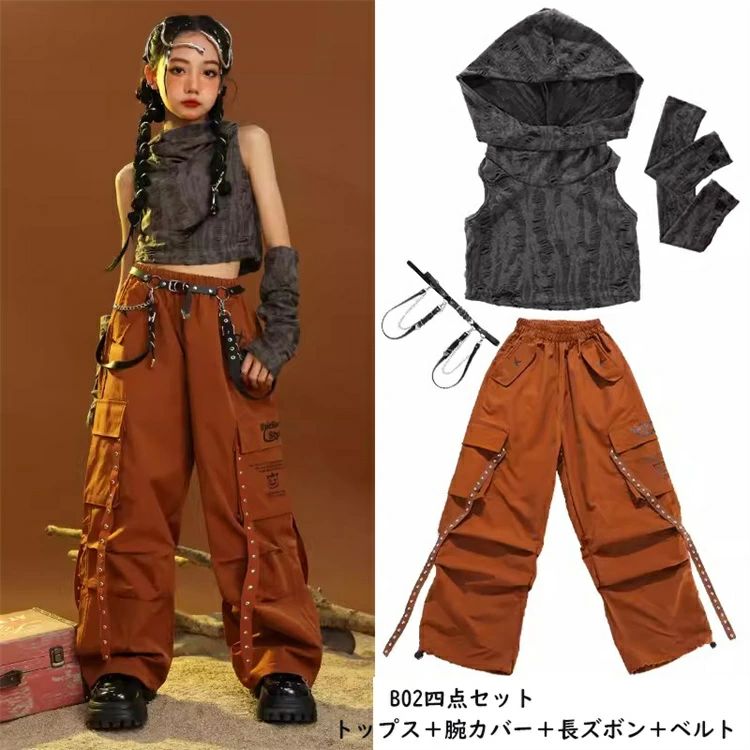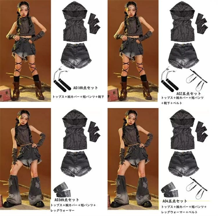 ダンス キッズ 女の子 ダンス衣装 パンク風 アームカバー フード付き ガールズ 無袖 長ズボン 短パンツ ダンスウェア 発表会 応援団 イベント ジュニア 普段着 jazz K-POP カッコイイ