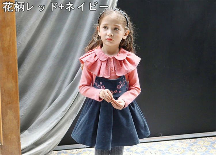ガーリーブラウス+ワンピース2点フォー キッズ ベビー マタニティ 早い者勝ち ピンク+ネイビー ドレス ホワイト+ピンク ドレス 花柄ピンク+ネイビードレス 花柄ホワイト+ブラック ドレス 90(身長85cm相当) 100(身長90cm相当) 110(身長100cm相当) 120(身長110cm相当) 130(身長120cm相当) 140(身長130cm相当)