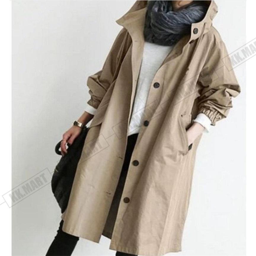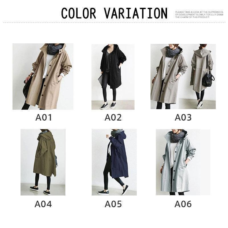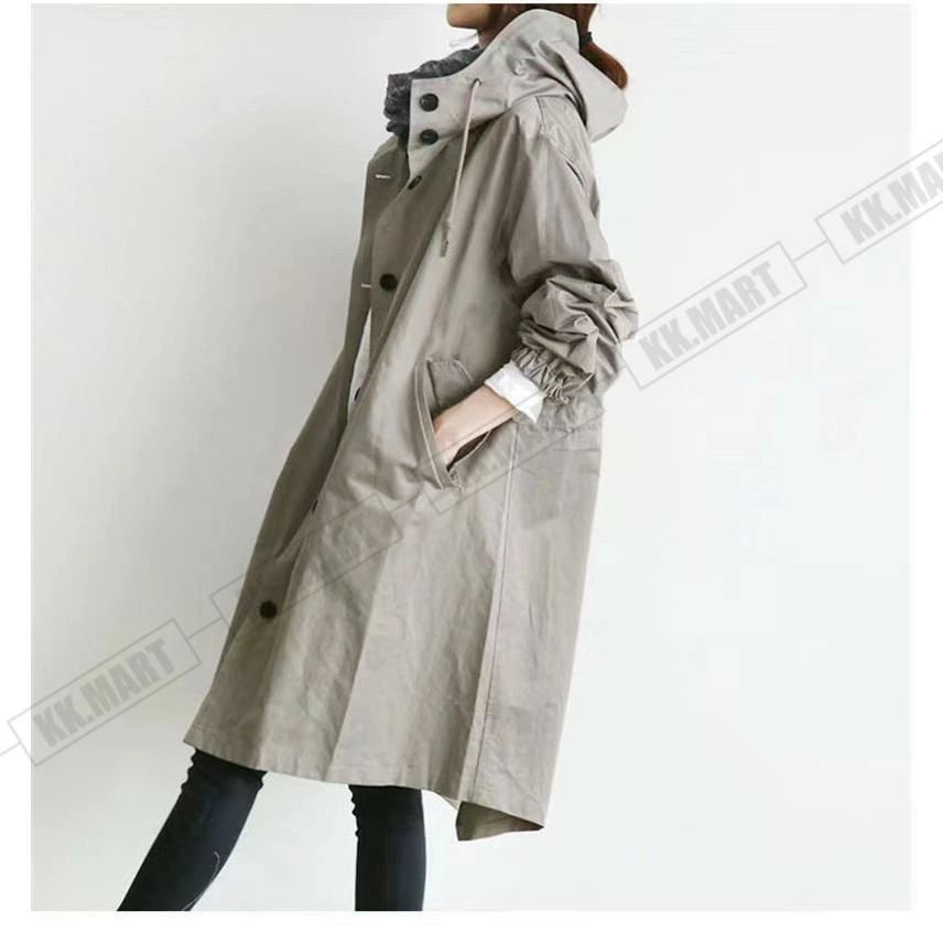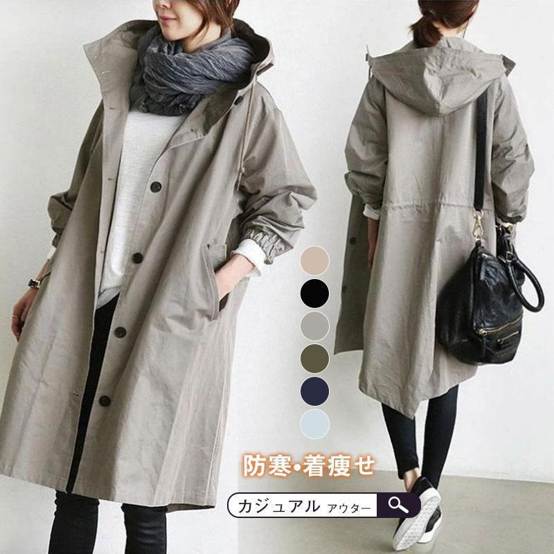 トレンチコートレディース薄手ロング丈春秋冬アウター上着カジュアルウインドブレーカーオーバーサイズ暖いフード付き大きいサイズ