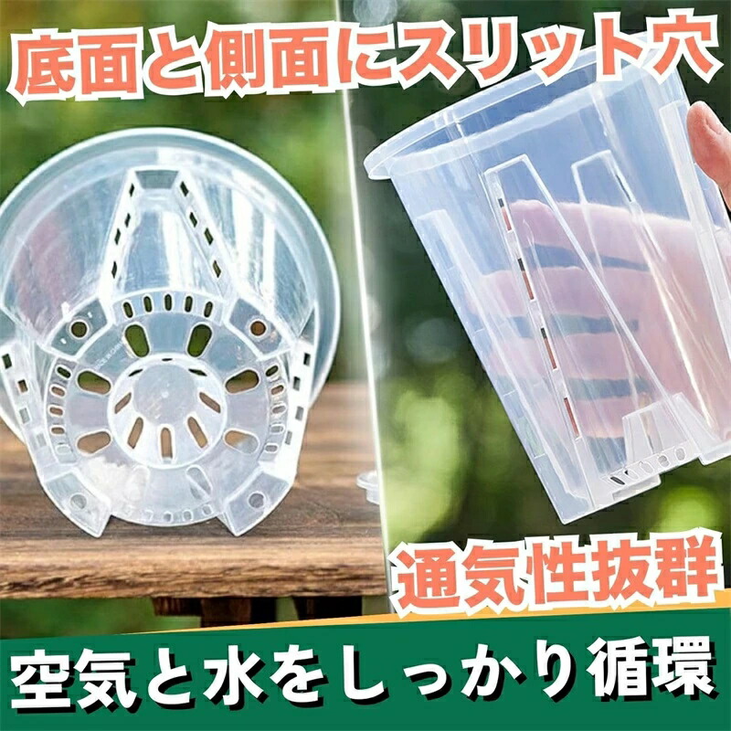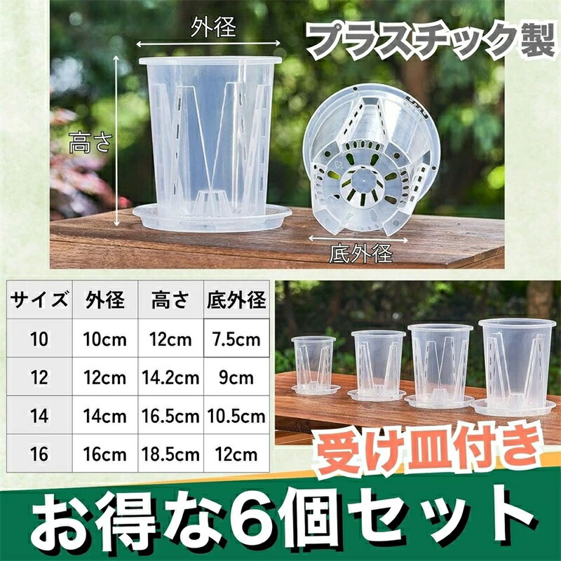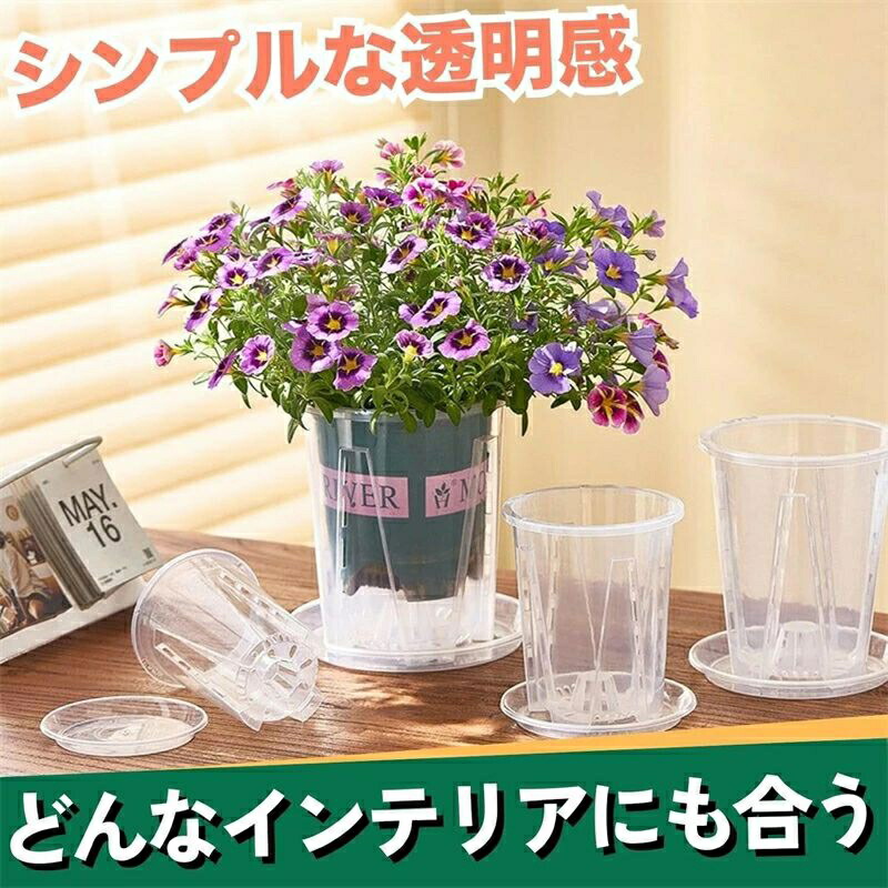 植木鉢 プラスチック スリット鉢 透明鉢 観葉植物 底皿付き 6個セット植木鉢 鉢