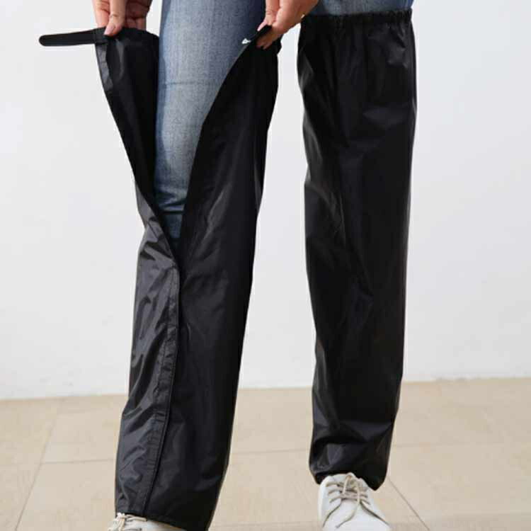 フルオープンタイプのレッグカバーなのでオーバーパンツを履くより簡単に雨からズボンを守ります。