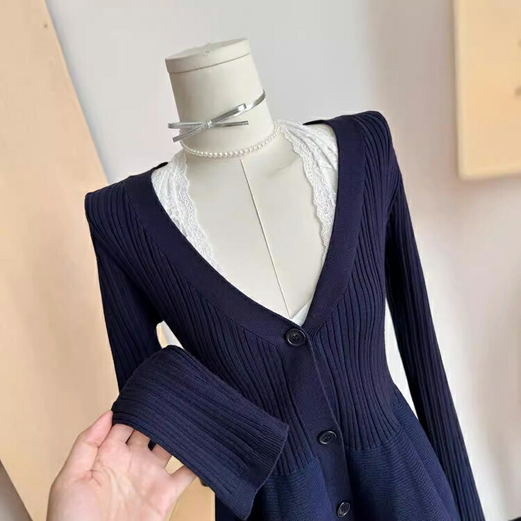 ペプラム ニット カーディガン レディ トップス カーディガン ボレロ 新作 紺色 ブラック ベージュ M L