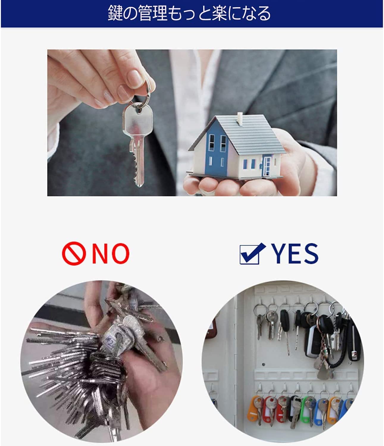 【壁掛け式】ネジ穴がついて、ネジとゴム栓も付属されているから、壁に固定することも可能です、オフィスの収納棚に入れても邪魔にならない大きさが魅力です。コンパクトサイズかつ鍵をたくさん収納できるキーボックスです。スペースを有効に活用することができます。