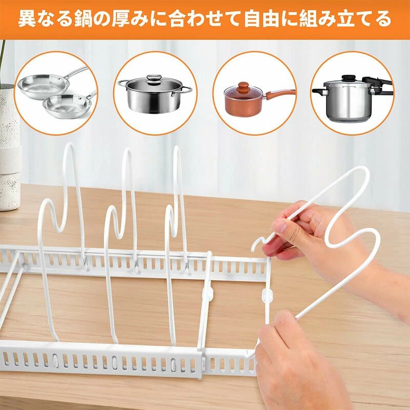 伸縮式 フライパンラック 13本仕切りパーツ付き キッチン 鍋スタンド フライパ食器スタンド 鍋収納ラック