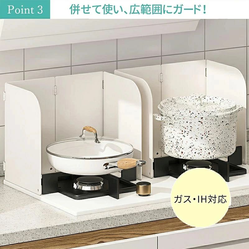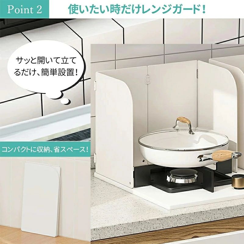 油ハネを防ぐ4面式 油はねを防止 しっかりと自立 コンパクトレンジガード フッ素加工 コンロガード キッチンガード オイルガード 4枚パネル 設置簡単 IHレンジも適用 コンロ周り 折 天ぷらガード