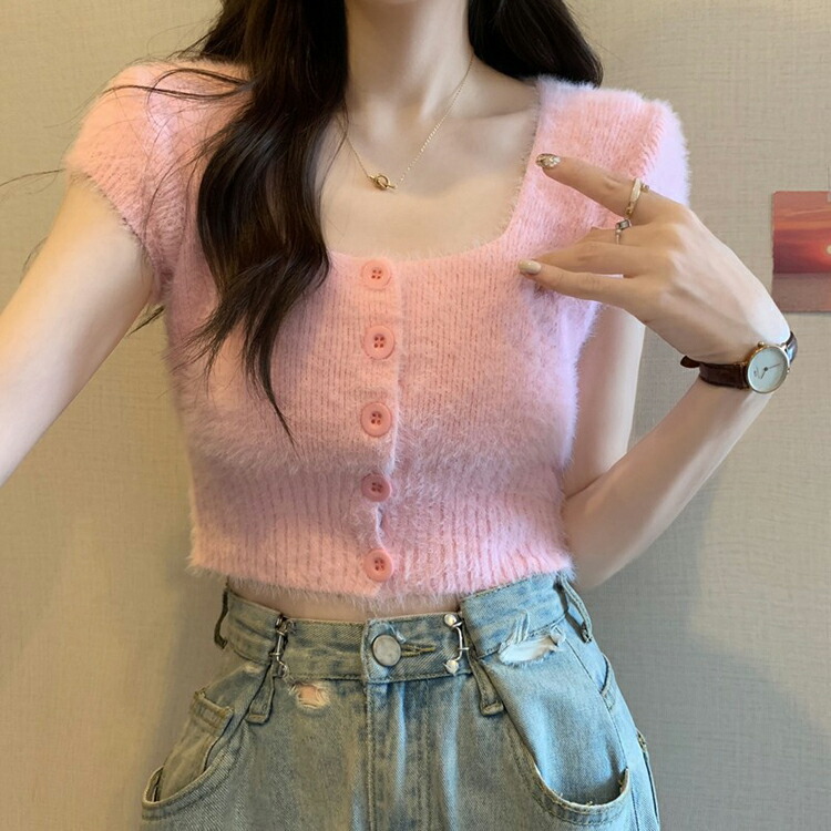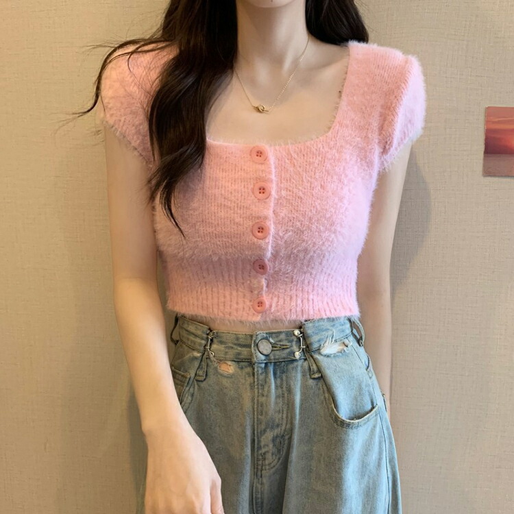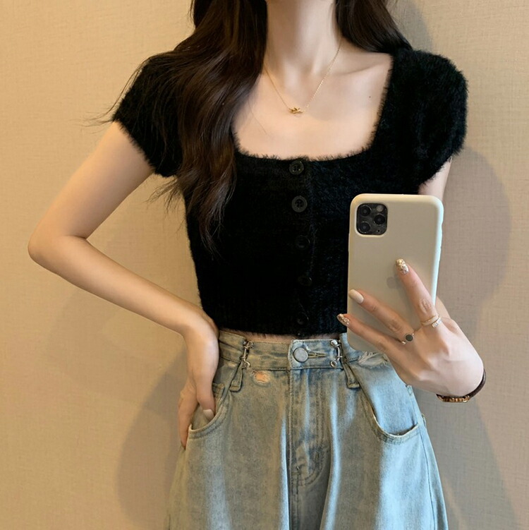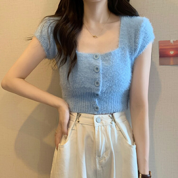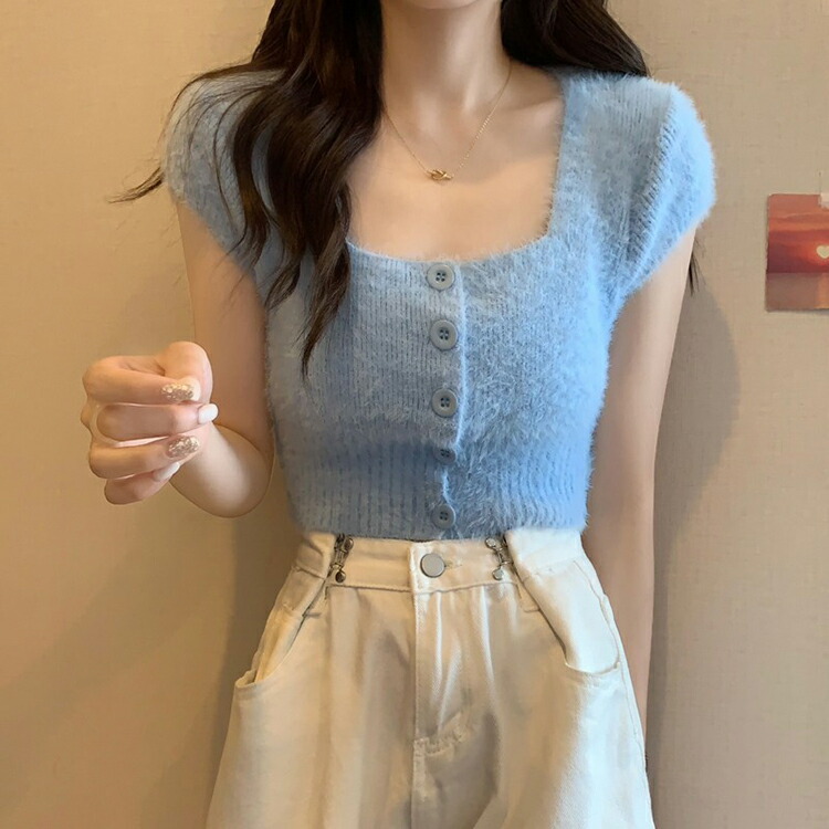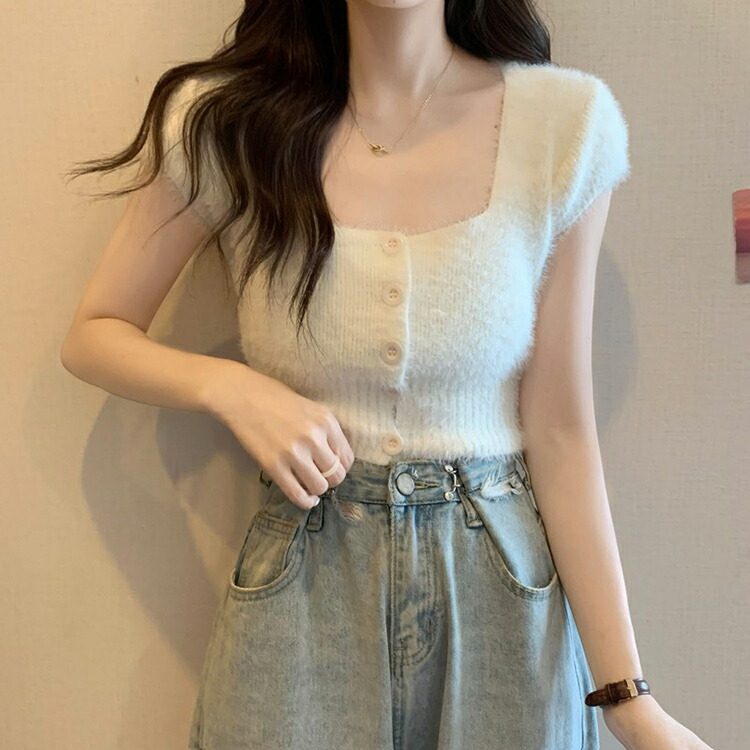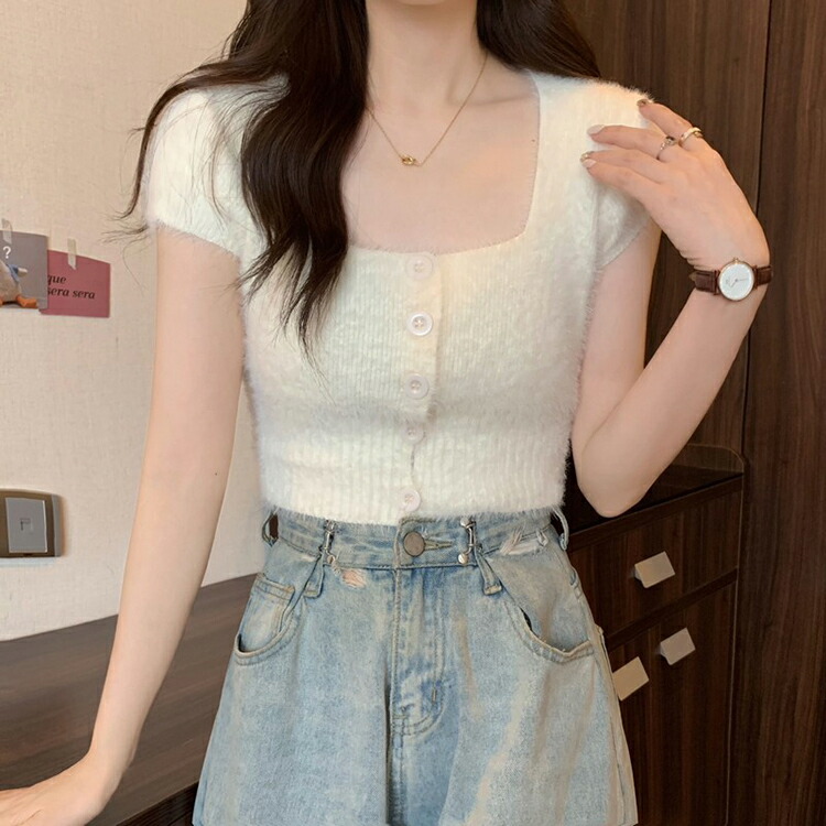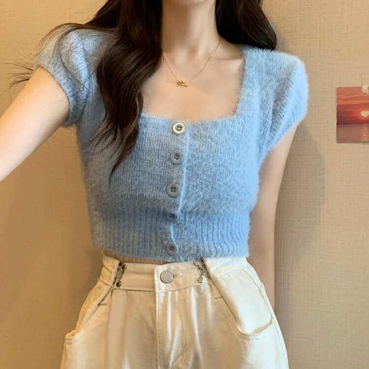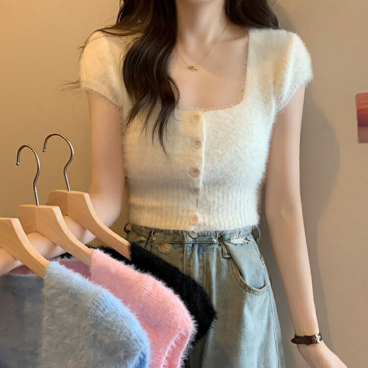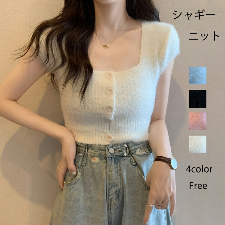 シャギー ニット 半袖 レディース 女 レディースファッション 特集 ホワイト ブラック ピンク ブルー