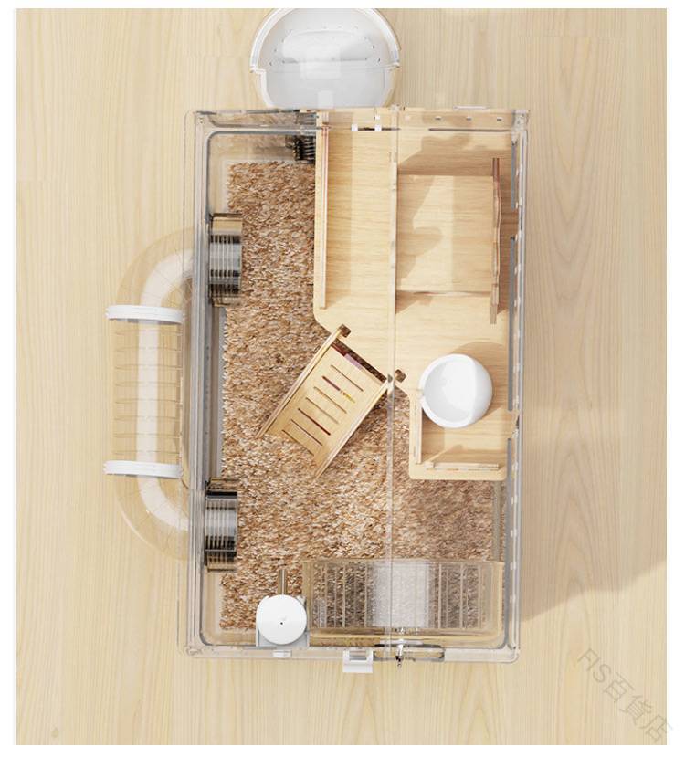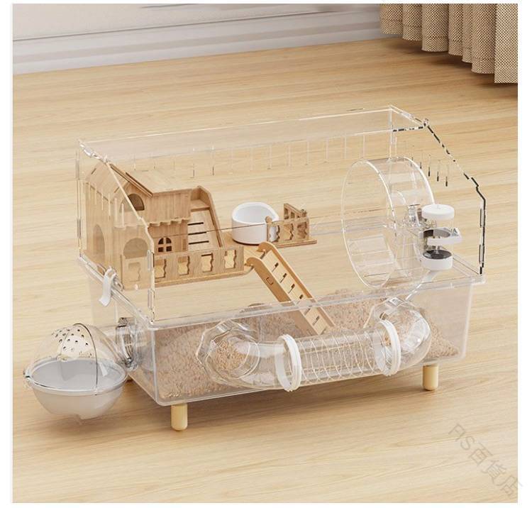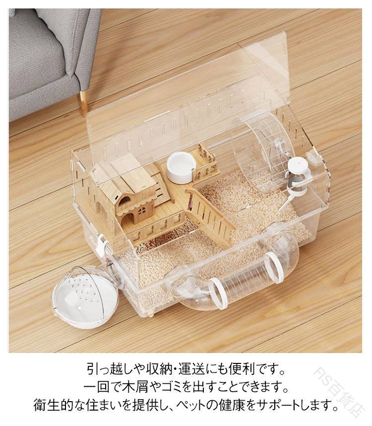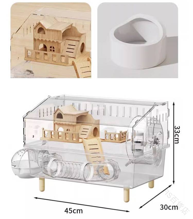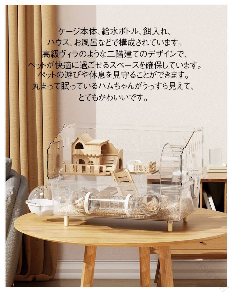 ゴールデンハムスター用アクリル製ケージ45×30×33cm大きい広々スペース給水ボトル付き通気性良好脱走防止静音設計多頭飼い対応組み立て簡単観察しやすい大型回し車お風呂付き小動物