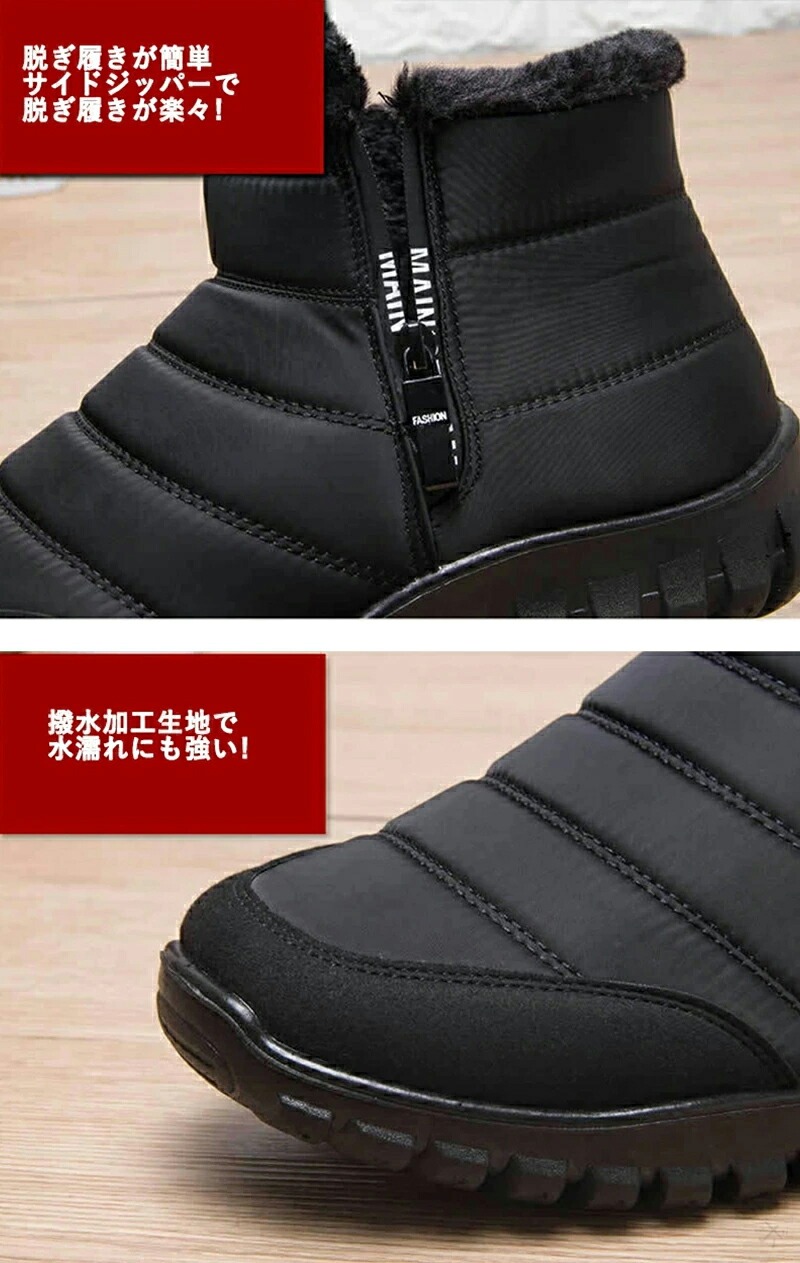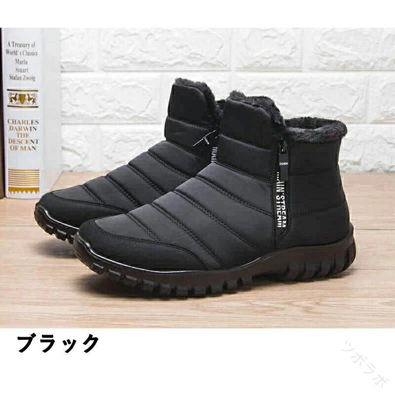 スノーブーツ メンズ ムートン メンズブーツ 裏起毛 冬靴 保温 人気 防寒靴 メンズ冬靴 起毛 サイドジップ 靴 シューズ 防滑 防水 防寒 通勤 撥水 ブラック あったか 寒冷地 25