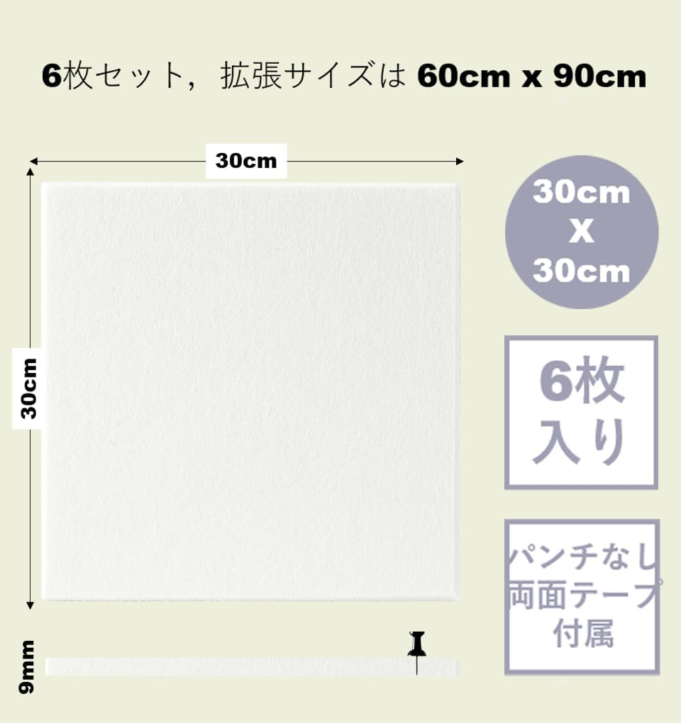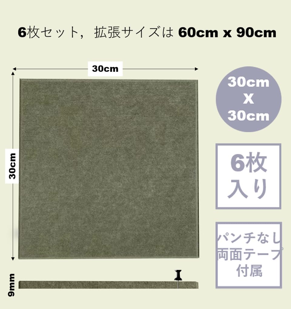 パッケージには高密度フェルトボード6本が含まれています。各コクボードのサイズは30×20cmです。