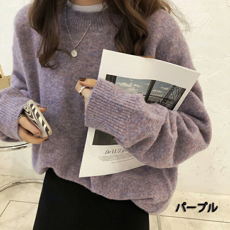 ニットセーター プルオーバー クルーネ トップス ニット セーター セーター 早い者勝ち 杏色 サックス キャメル イエロー パープル