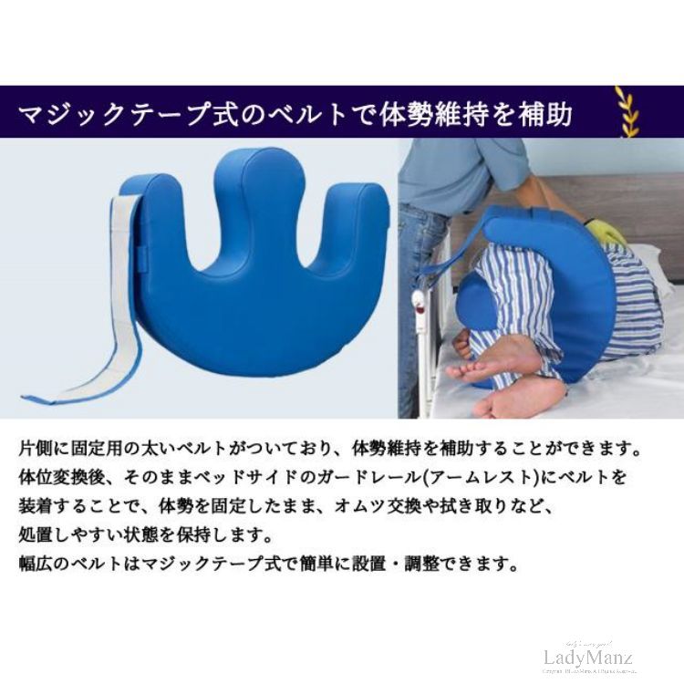 身体障害の介護に適用 体位変換 ピロー 寝返り 介助 クッション 固定ベルト付き 寝返り補助クッション 補助 U字型 PUレザー 防水 介護用品 補助装置 介護用 回転 床ずれ防止 リハビリ用具 介護