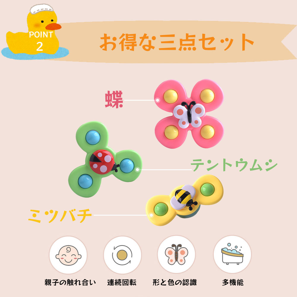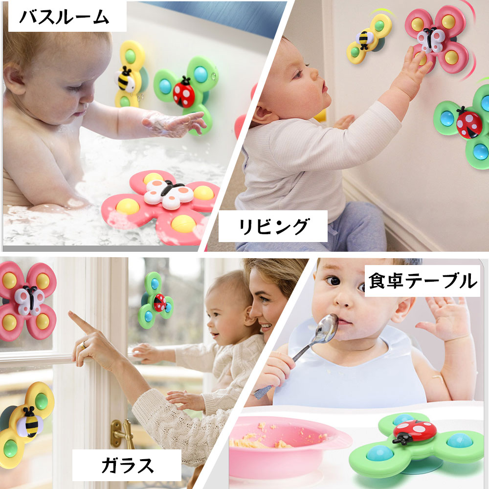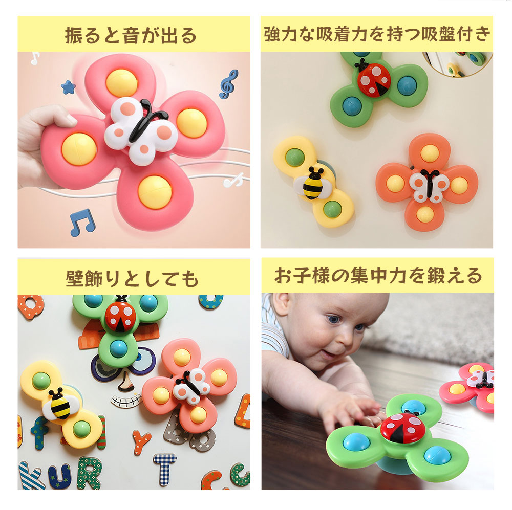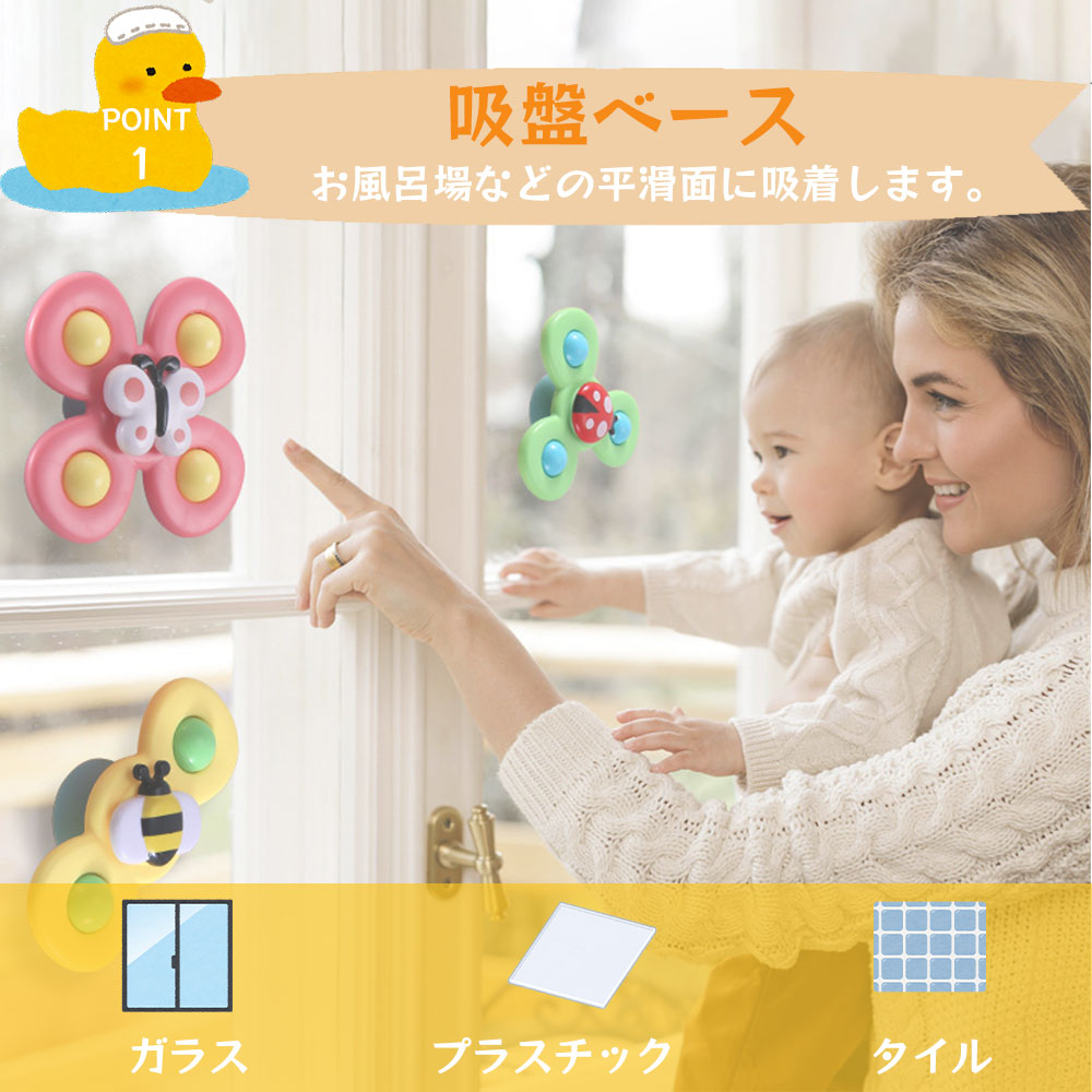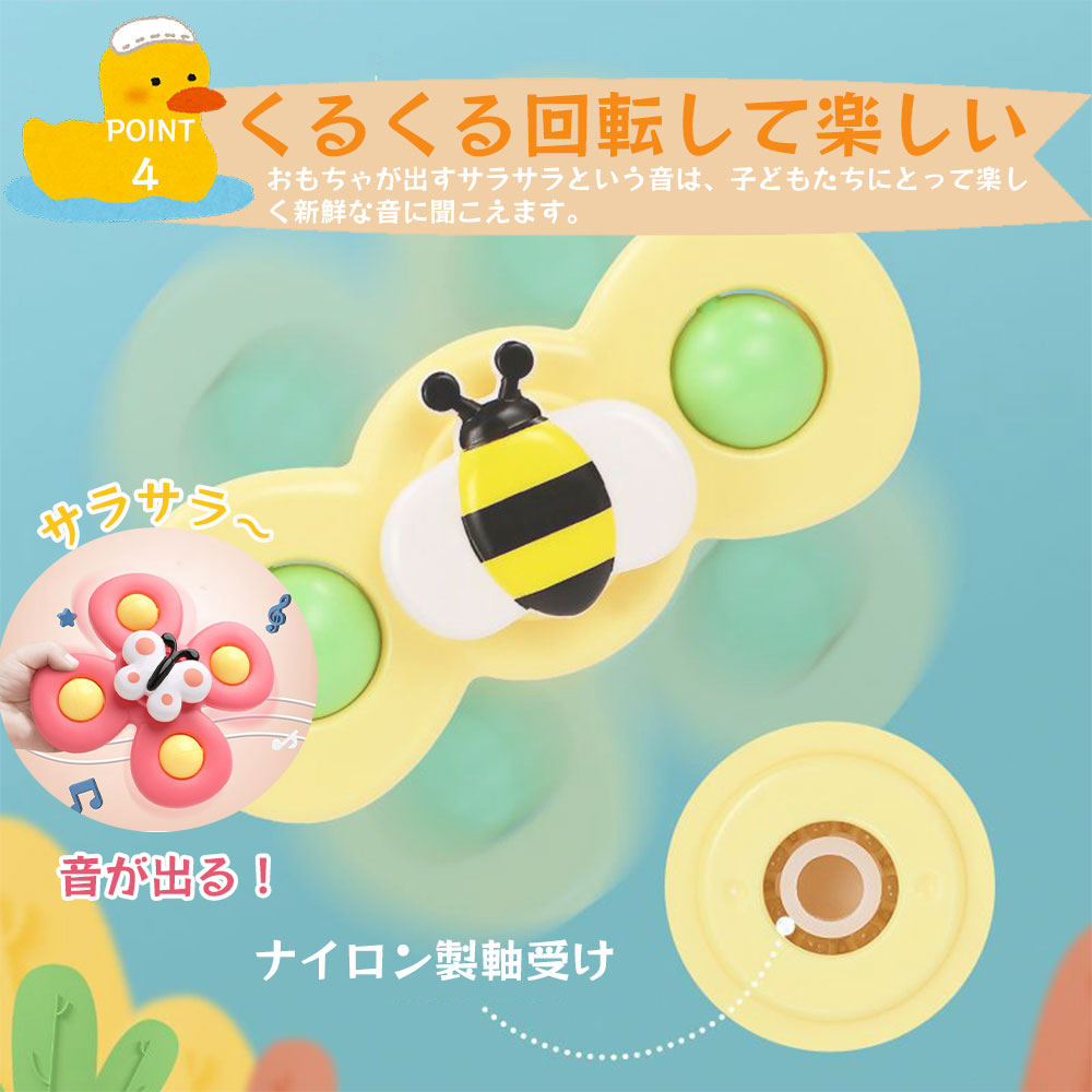 ハンドスピナー 赤ちゃん 水道 子供 強力 お風呂おもちゃ 風車おもちゃ 水遊びおもちゃ 風呂吸盤回転こま 歯がため 吸盤付きコマ 指先訓練 ストレス解消 音が出る かわいい 1歳 2歳 お風呂遊び