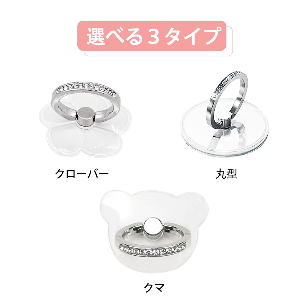 スマホリング 透明 おしゃれ ホールド スマートフォン タブレット 超目玉商品 クマ クローバー 丸型