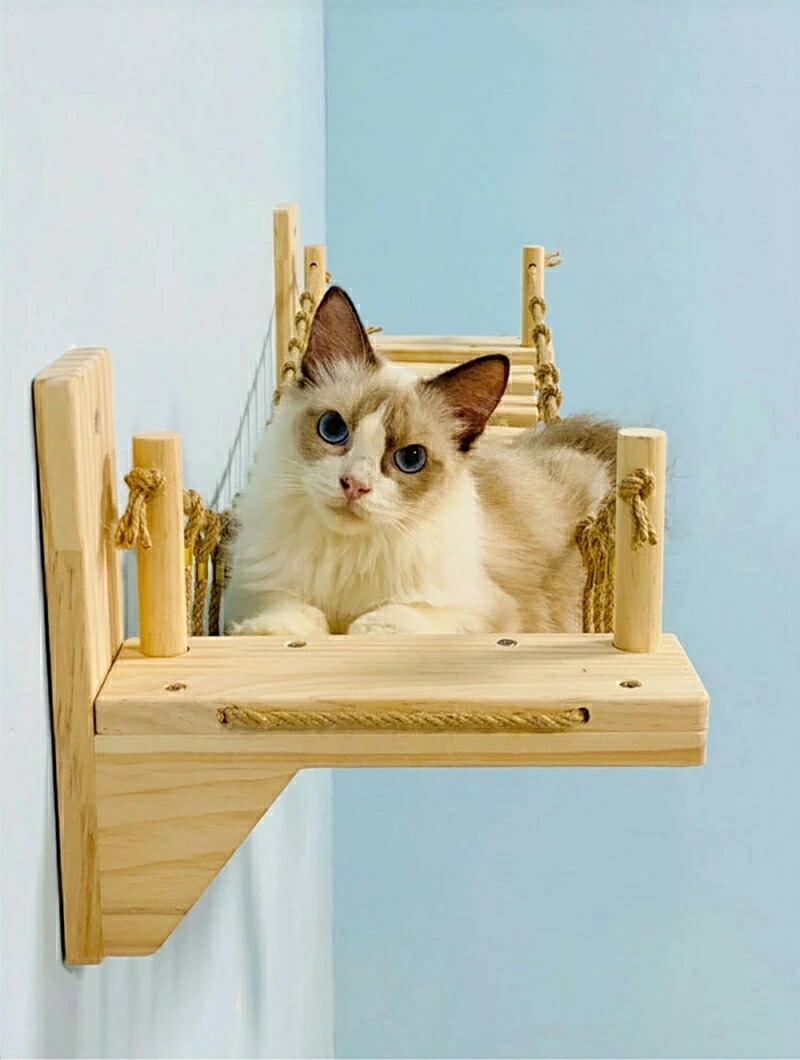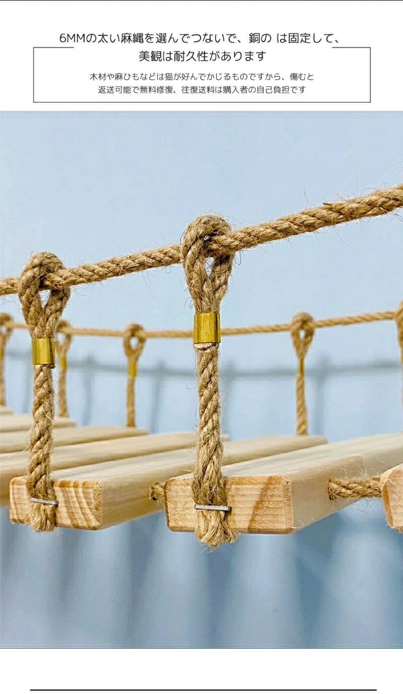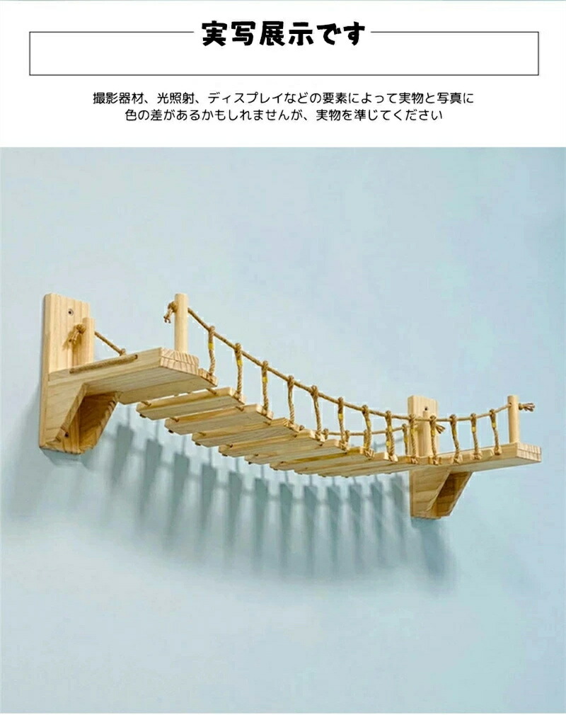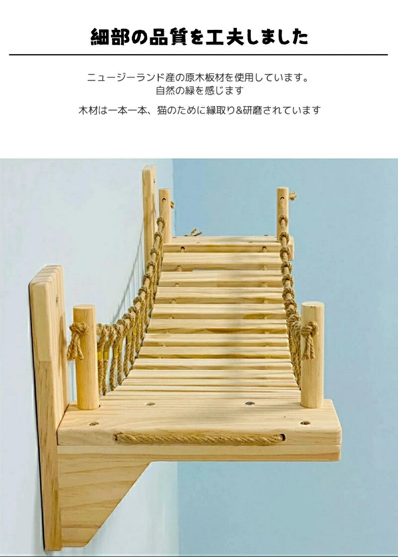 最安値挑戦/キャットタワー キャット ステップ キャットハンモック はしご 木製 吊り橋 猫ベッド 遊び場 ハンモック 壁用 ストレス解消 運動不足解消 組み立て簡単 棚板