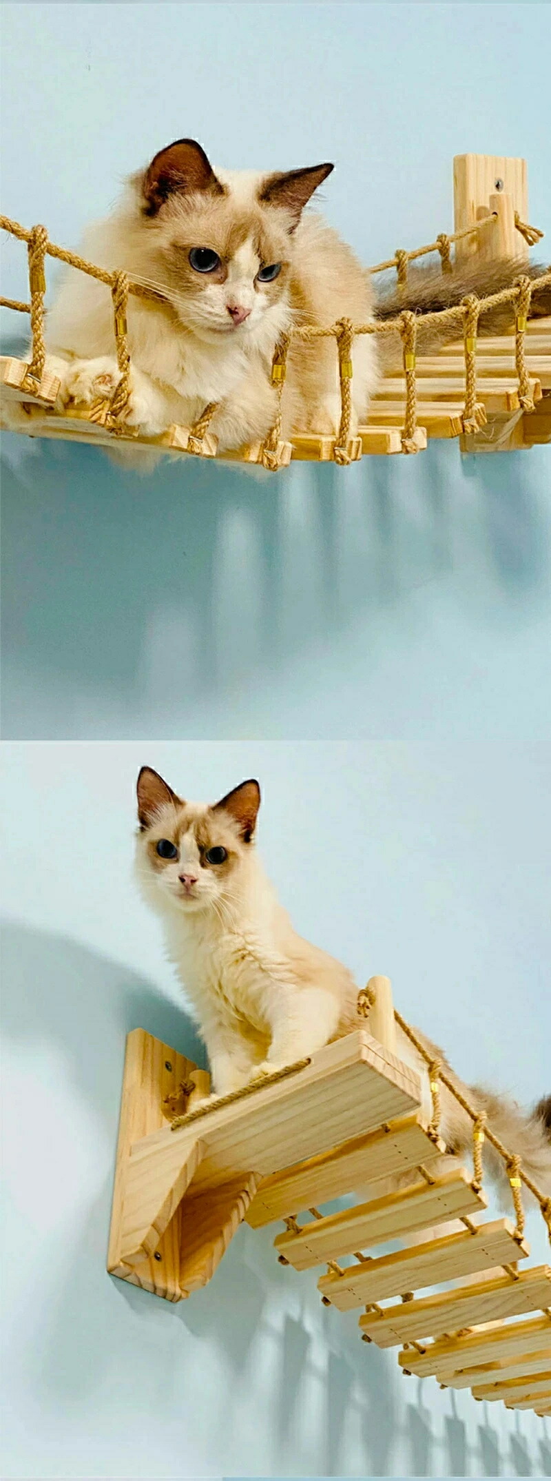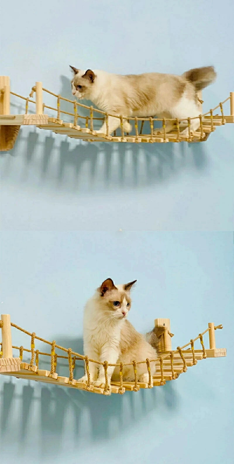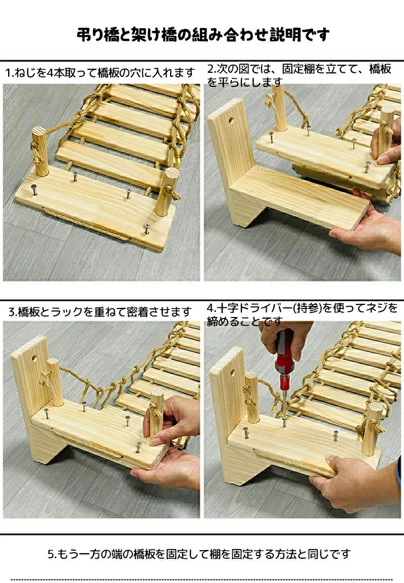 最安値挑戦/キャットタワー キャット ステップ キャットハンモック はしご 木製 吊り橋 猫ベッド 遊び場 ハンモック 壁用 ストレス解消 運動不足解消 組み立て簡単 棚板