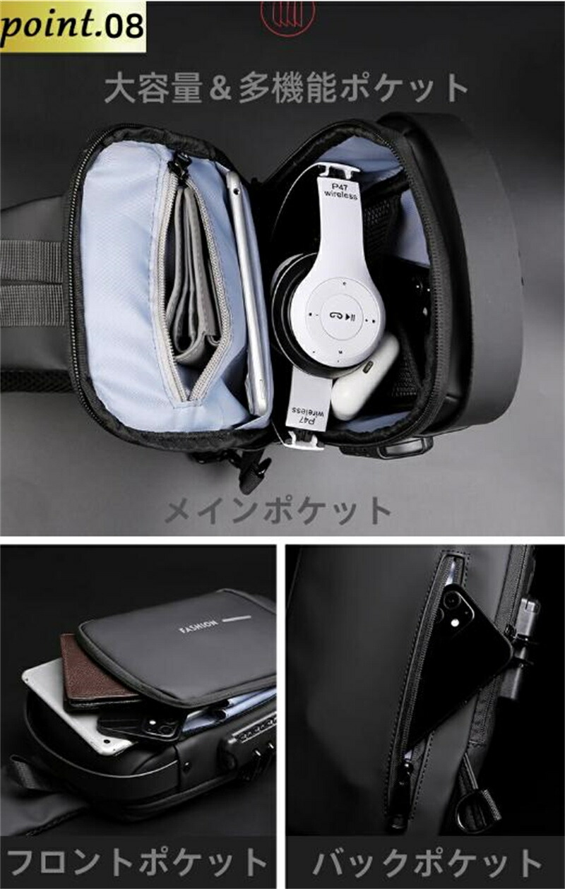 ボディバッグ ショルダーバッグ メンズ レディース 大容量 斜めがけ 肩掛け 防犯撥水 おしゃれ 通勤 通学 アウトドア 旅行 スリ バッグ ipad対応 usb充電ポート付き 対策