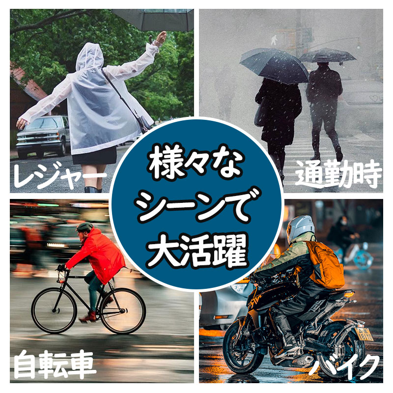 洗車、お風呂掃除、雨や雪の日の通勤・通学、サイクリング、旅行、アウトドアに最適です。