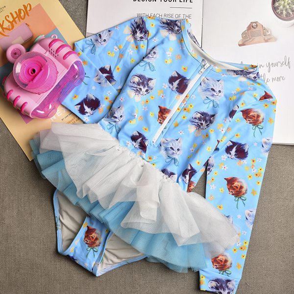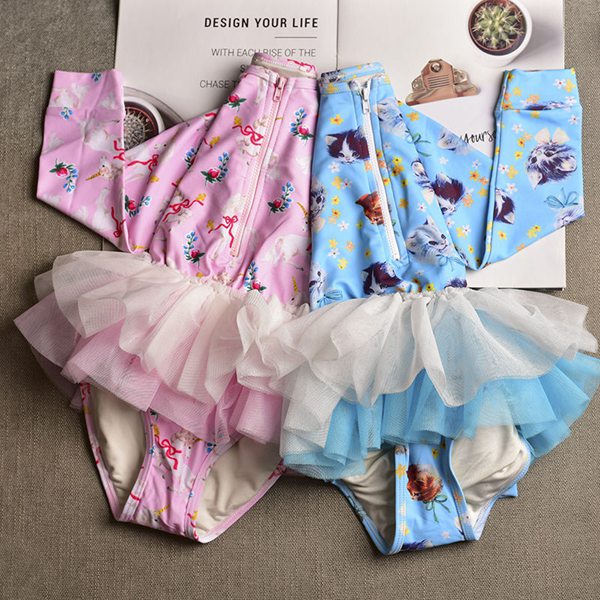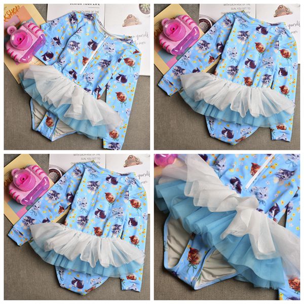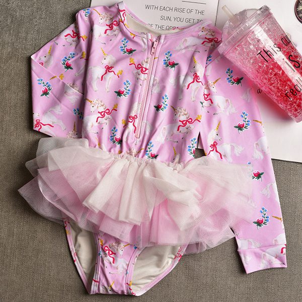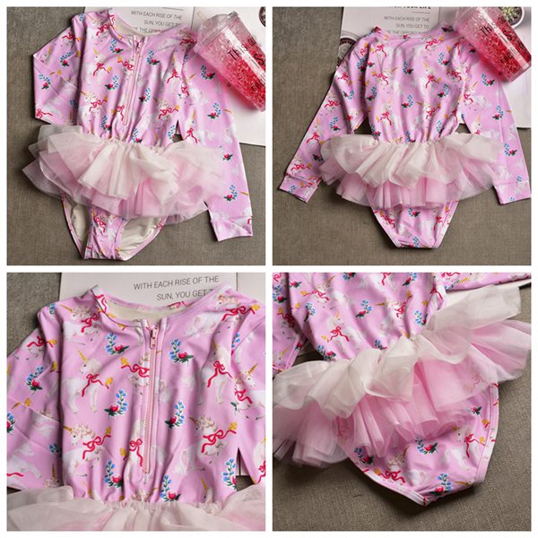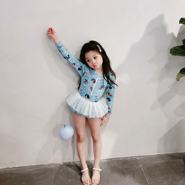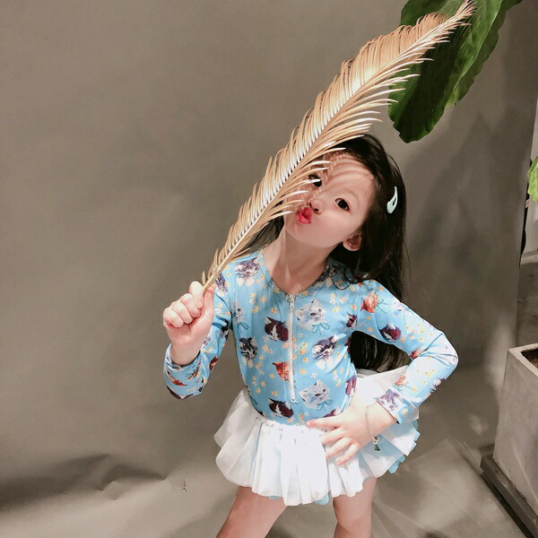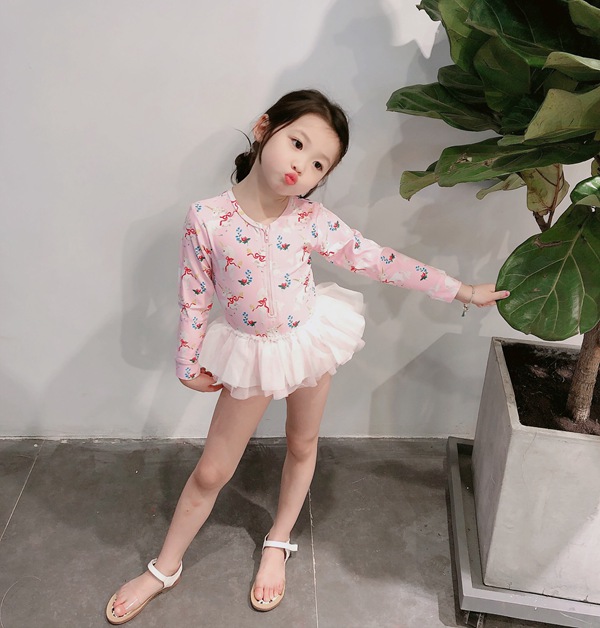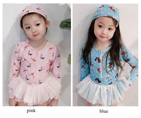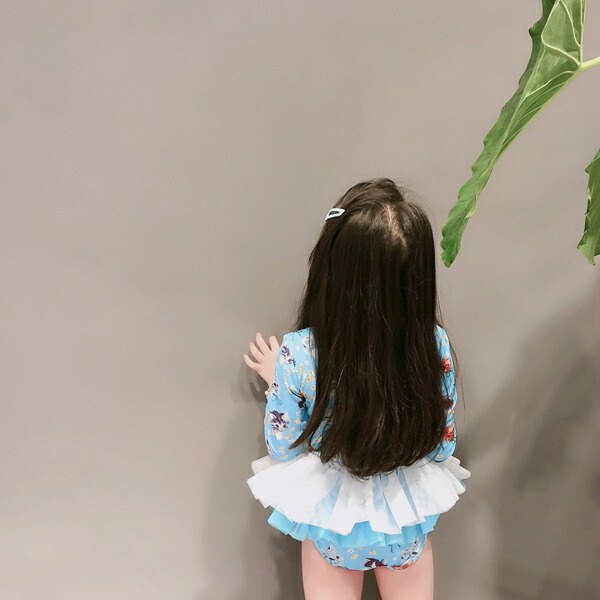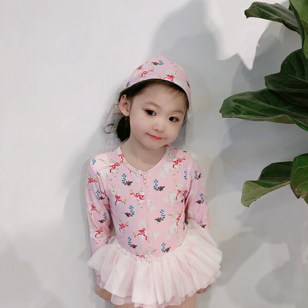 水着 女の子 紫外線対策バッチリ キッズ水着 2セットキャップ付 長袖 ワンピースキッズ ベビー水着 赤ちゃん kids ワンピース ジュニア 花柄チュール付 ベビー