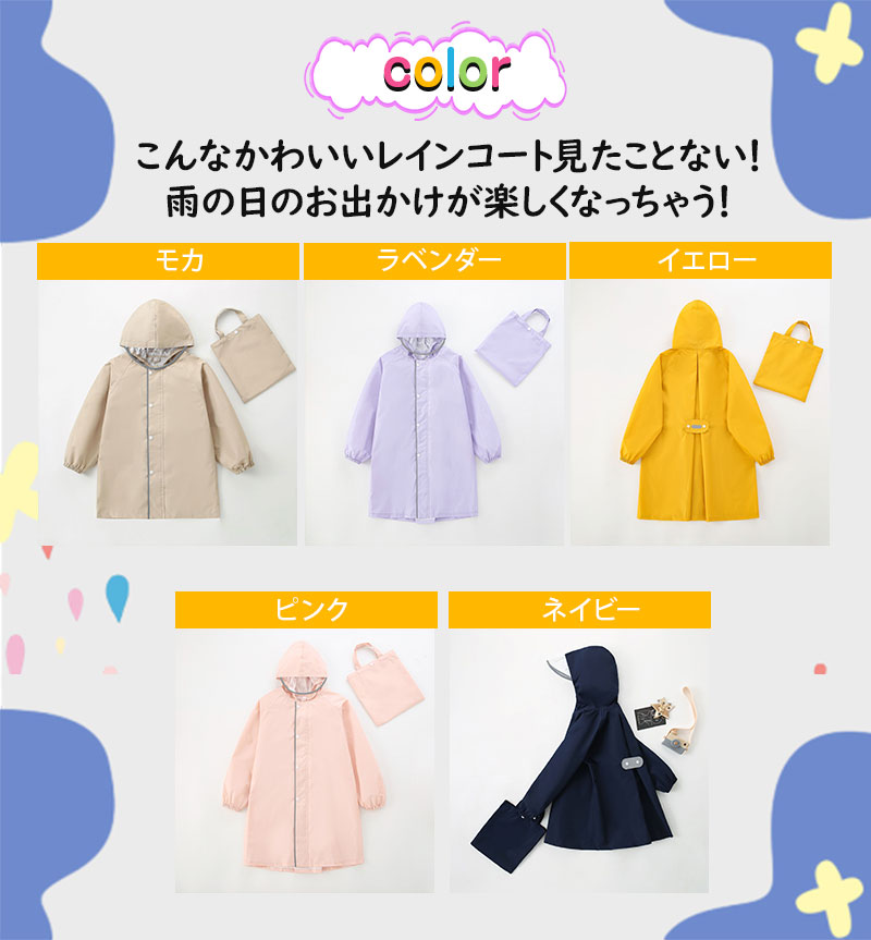 レインコート キッズ ランドセル対応 キッズ レインウェア 傘 レインコート 通販 モカ ラベンダー イエロー ピンク ネイビー S M L XL 2XL