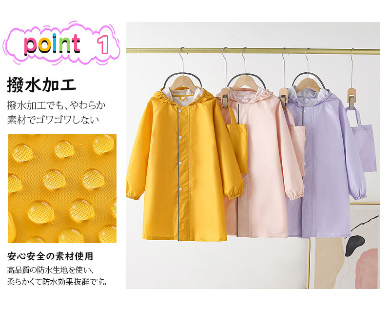 長めの丈でランドセルを背負ってもをキープ下半身も濡れにくい。