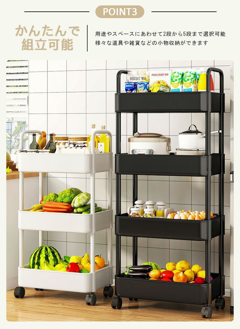 キッチンワゴン キャスター付き 収納ラ ホワイト ブラック 2段:37*25*高さ42cm 3段:37*25*高さ70cm 4段:37*25*高さ98cm 5段:37*25*高さ126cm