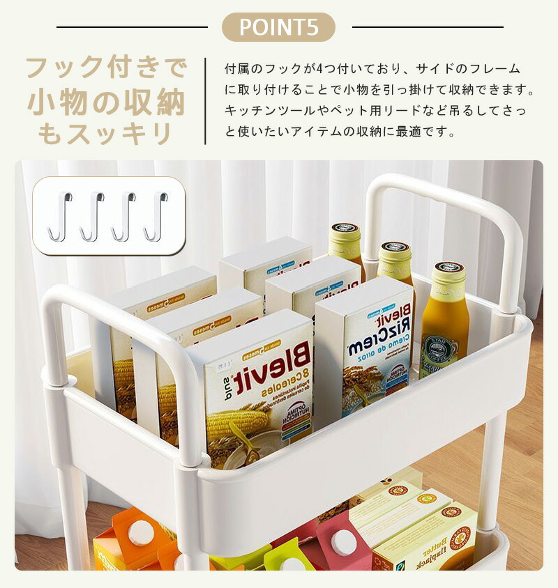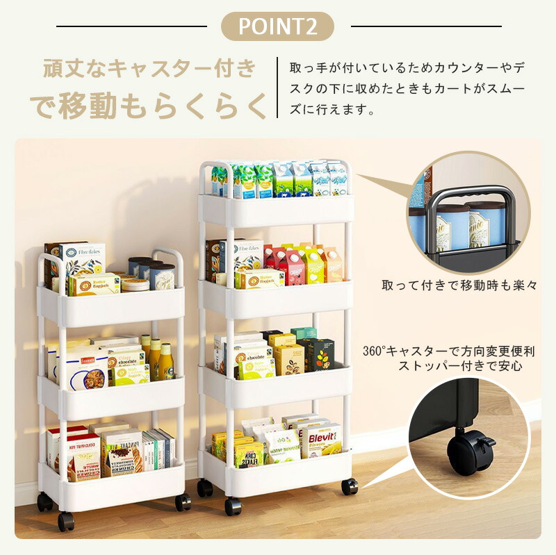 キッチンワゴン キャスター付き 収納ラック 大容量 耐荷 キッチン 収納 マルチワゴン ハンドル付き 2段 3段 4段 5段 ラック 北欧 キッチンラック 収納カート 隙間収納 バス ランドリーラック