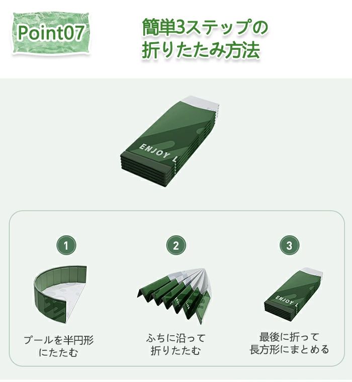 使用後しっかり乾燥させた後は、コンパクトに畳むことができ、側面をジグザグに折りたたんで、最後に底面を折り畳むだけで整理整頓できます。