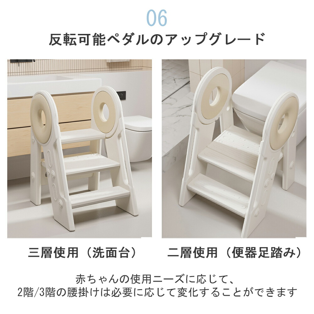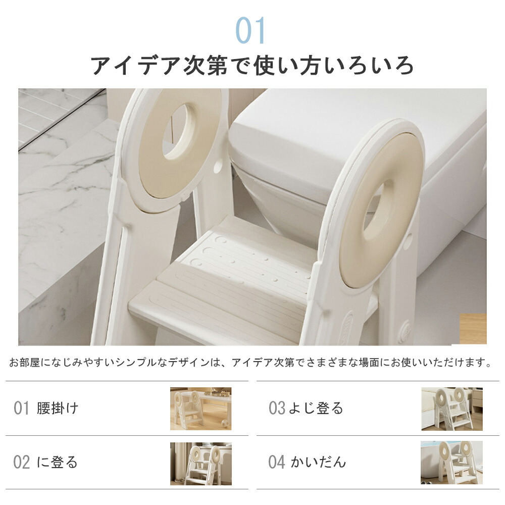 【様々なシーンで活躍】トイレトレーニングやキッチンのお手伝い、洗面所など、さまざまなシーンでお使いいただけます。子供が独立するための最適な幼児学習スツールであり、家事に忙しい時でも子供と一緒に過ごすことができます。一台あれば家中どこでも活躍できますね。
