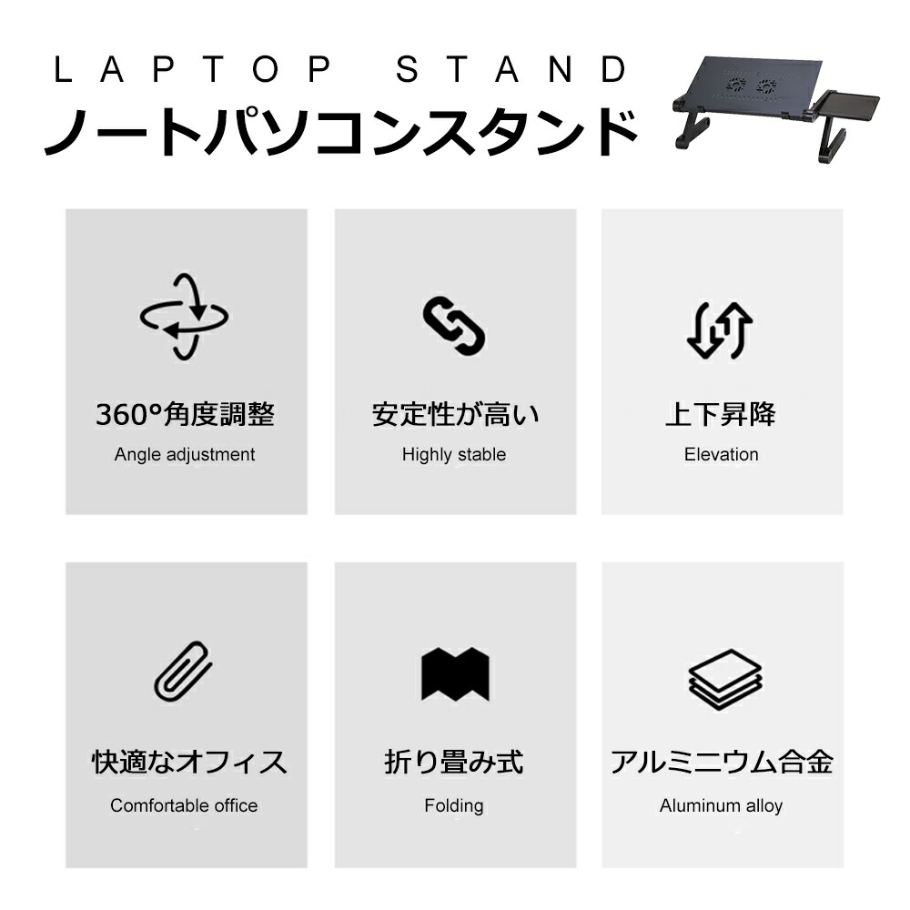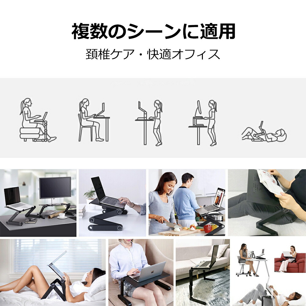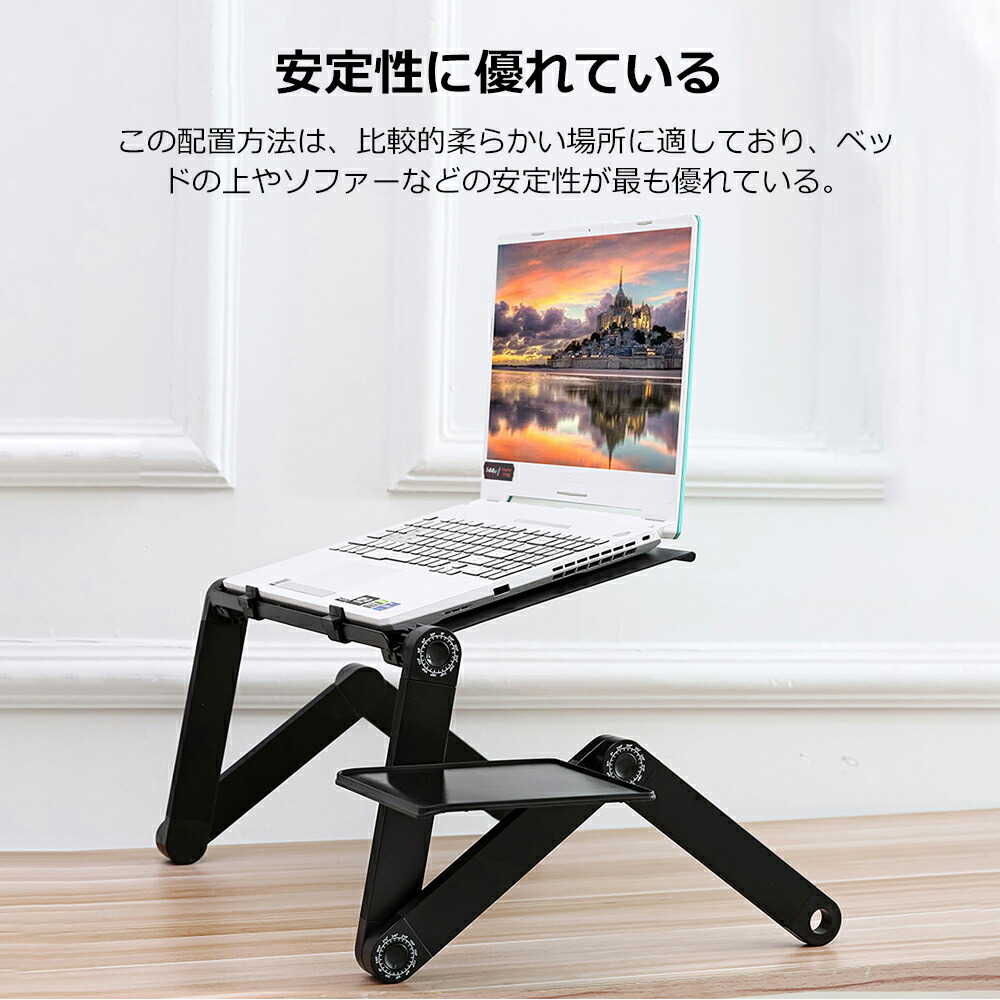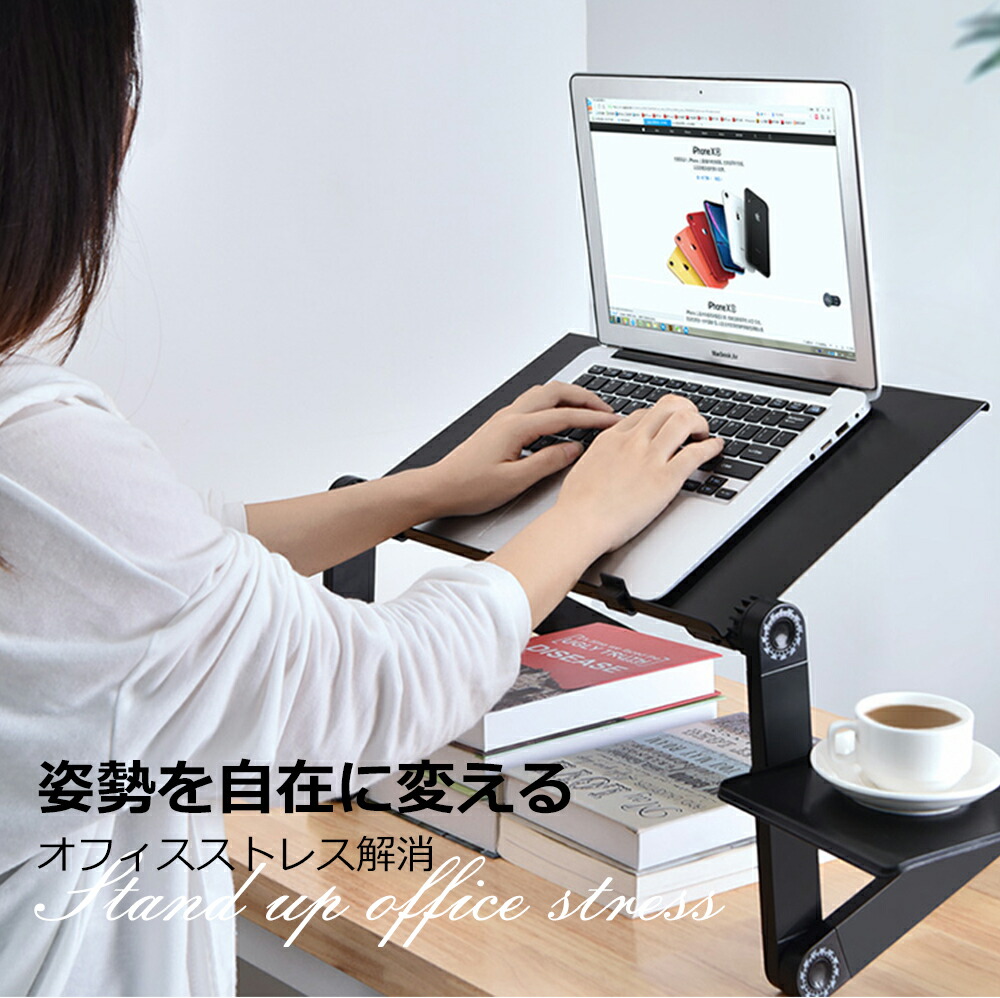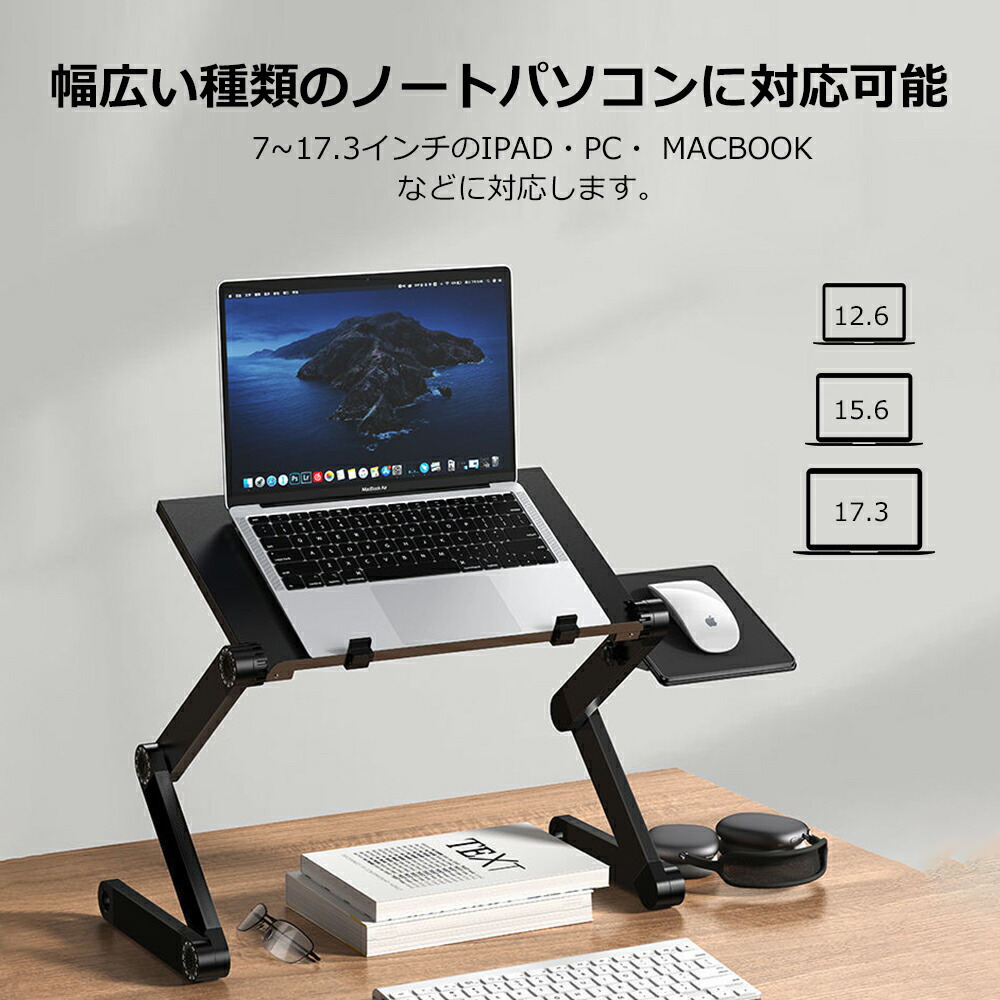 PCスタンド パソコンデスク折り畳み式 マウス置き場 ノートパソコンスタンド 伸縮型 角度調整 高さ 持ち運び 雑誌 リラックス ブラック リモート授業 人間工学設計 ブラ 姿勢改善
