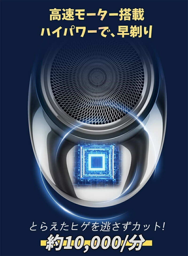 【最新版高速回転7500rpm】2023年最新版高速回転7500rpm/分パワフルのモーターと6枚高品質アルミ合金製内刃が搭載している電動シェーバーは耐久性があり、2分間で早剃り&深剃りを同時に実現でき、荒いひげでも簡単に剃り、仕事のの朝の時間を節約します!