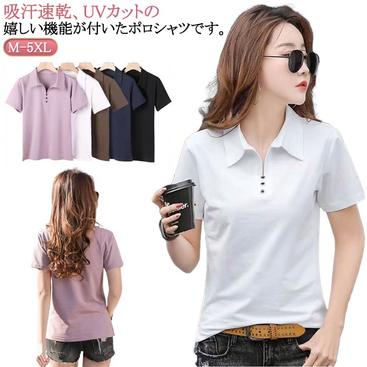 ポロシャツ レディース 半袖 ドライ レディースファッション 人気 パープル ブラウン ブラック ホワイト ネイビー M L XL 2XL 3XL 4XL 5XL