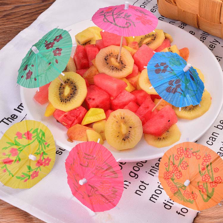 カクテル傘だけでなく、フルーツ、ケーキ、パンなど料理のデコレーション用品としても利用できます。