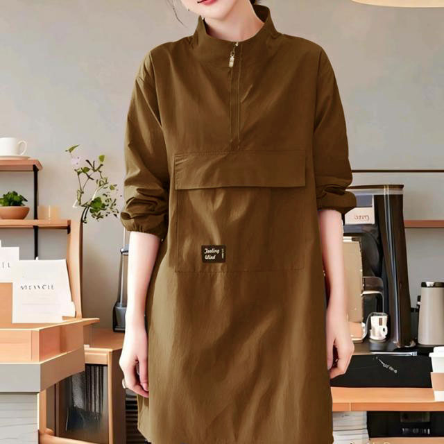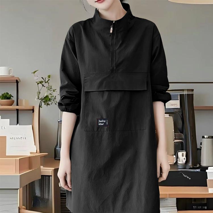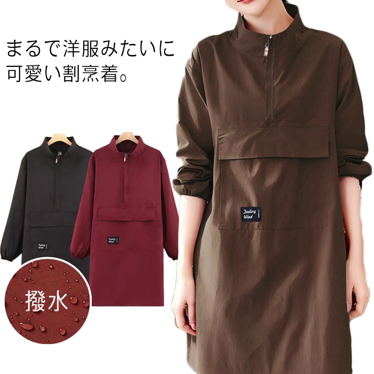 割烹着 かっぽうぎ 長袖 スモック エプロン 撥水 ハーフジップ ロング丈 ワンピースエプロン 立ち襟 ハイネック レディース メンズ 大きいサイズ 作業エプロン おしゃれ 30代 40代 5 20代